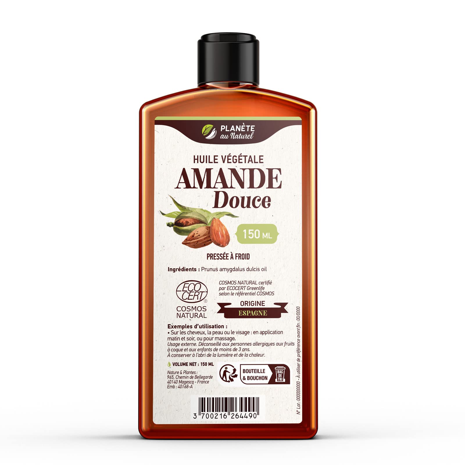 Sweet ALMOND Oil 150 ml - Cosmos Natural - Plan te au Naturel - Cold pressed - Hair skin face
