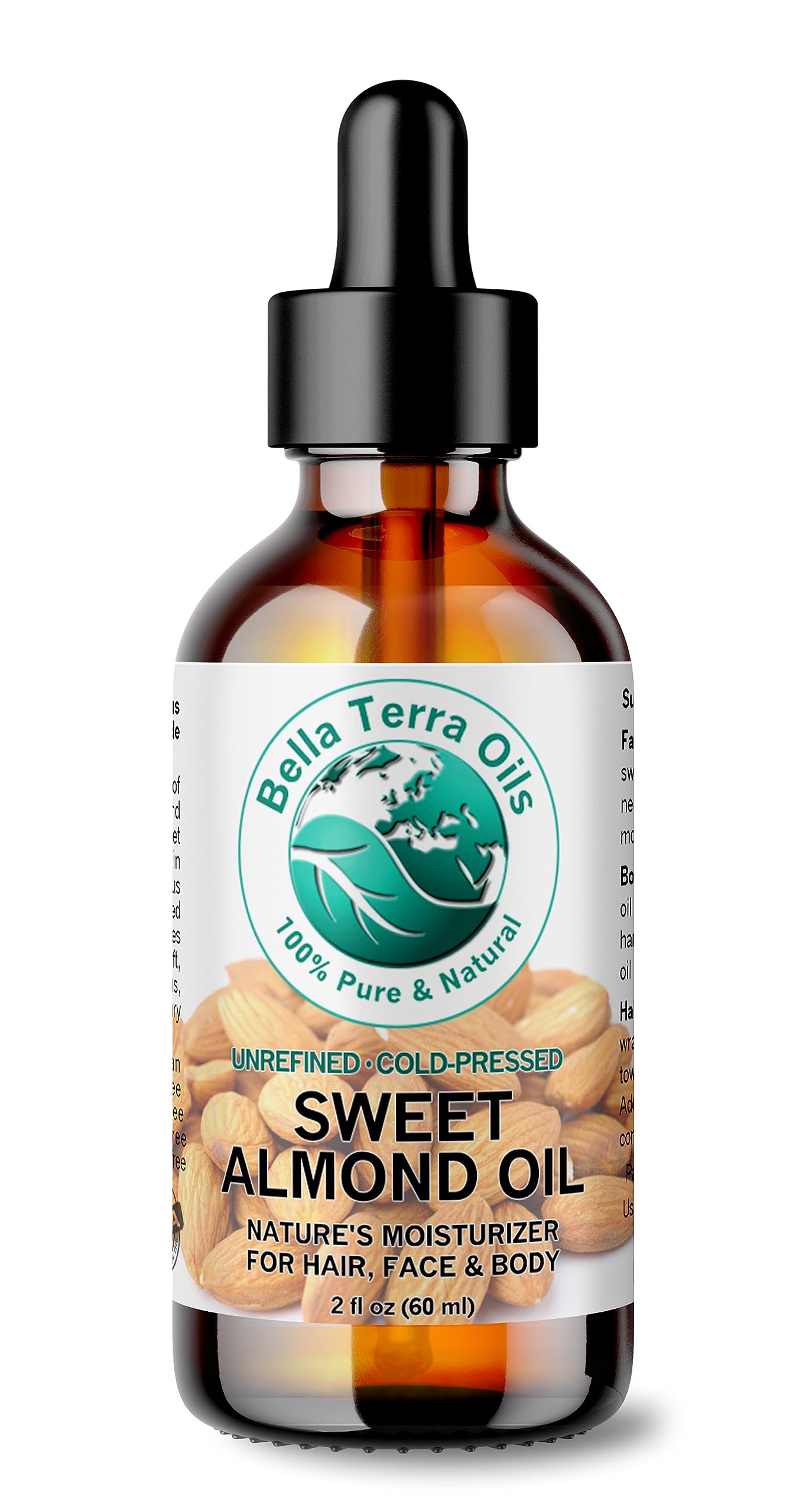 Sweet Almond Oil 2 oz 100% Pure Cold-pressed Unrefined Organic - Bella Terra Oils