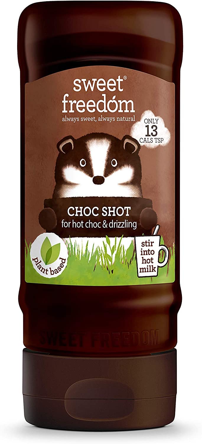 Original Choc shot, simply the chocolate syrup of your dreams makes super smooth hot choc and turns porridge, pancakes, fruit and yoghurt into tasty treats. Choc shot is vegan plant-based and without added refined sugar, no artificial sweeteners, no unpleasant odors. Completely natural sweetness of fruits - apples and carob, rich in fiber. Suitable drizzle over porridge, pancakes and waffles bakes brilliantly - replace sugar and cocoa. INSTRUCTIONS FOR USE Stir into hot milk to make hot chocolate or to sweeten foods and drinks. SAFETY WARNING May contain allergens. High in fiber. Store in a cool, dry place. See moreSweet Freedom Choc Shot Vloeibare Warme Chocolademelk 2 x 320g Originele Choc shot, simpelweg de chocoladesiroop van je dromen maakt super gladde warme choc en verandert pap, pannenkoeken, fruit en yoghurt in smakelijke lekkernijen. Choc shot is vegan plantaardig en zonder toegevoegde geraffineerde suiker, geen kunstmatige zoetstoffen, geen nare geurtjes. Volledig natuurlijke zoetheid van fruit - appels en johannesbrood, rijk aan vezels. Geschikte motregen over pap, pannenkoeken en wafels briljant bakt - vervang suiker en cacao. GEBRUIKSAANWIJZING Roer door hete melk om warme chocolademelk te maken of voedsel en dranken te zoeten. VEILIGHEIDSWAARSCHUWING Kan allergenen bevatten. Hoog in vezels. Bewaar op een koele, droge plaats. Meer bekijken
