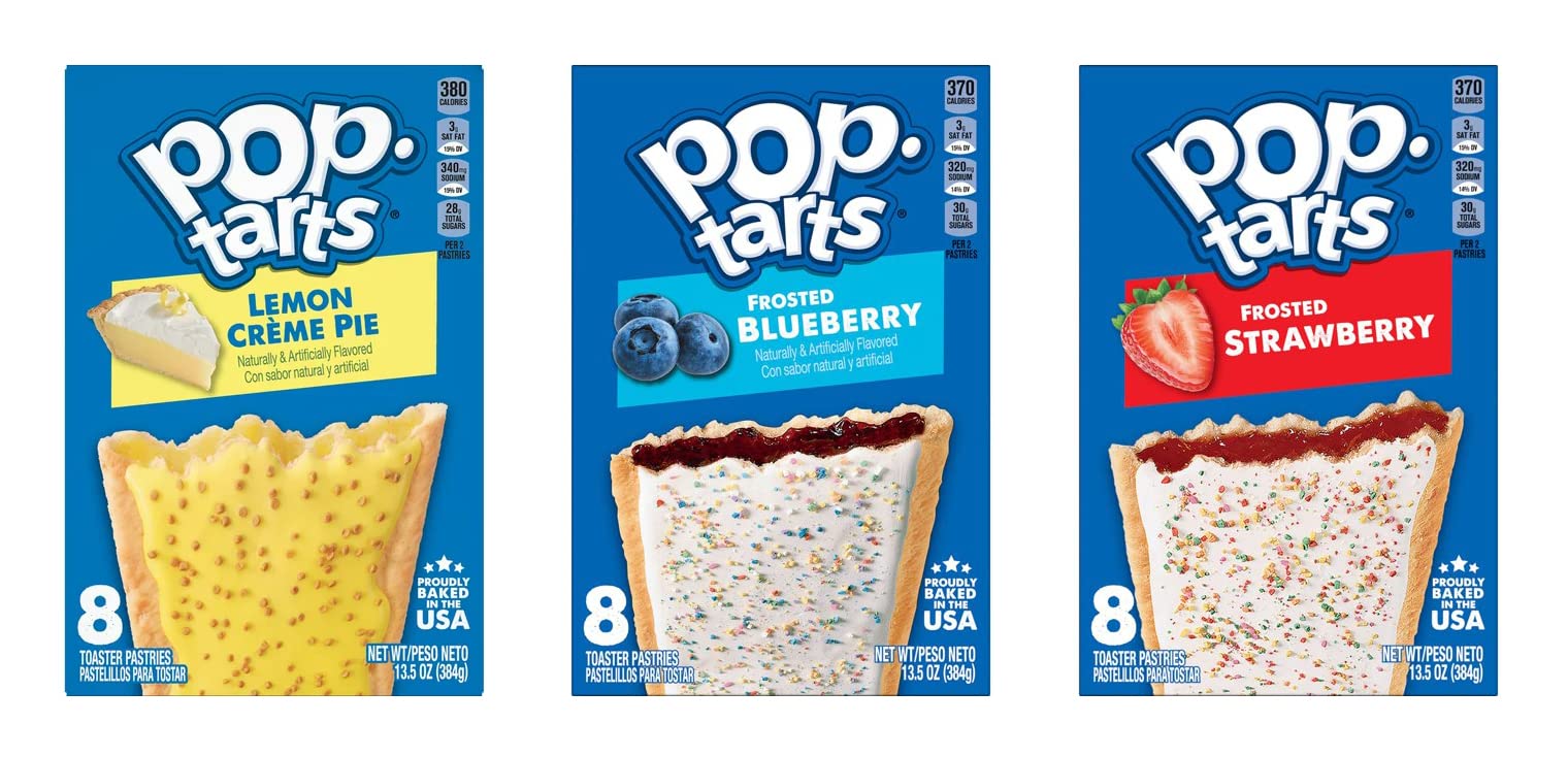 Toasted, frozen, or straight from the box - add a little fun to breakfast or snack time with Pop-Tarts! Start your day with a sweet and decadent puff of delicious filling, flavored with either Frosted Strawberry, Blueberry, or Lemon Pie in a pastry crust, topped with a delicious frosting. A quick and tasty snack anytime for the whole family, Pop-Tarts pastries are a perfect companion for lunch boxes, after-school snacks, and busy and on-the-go times.