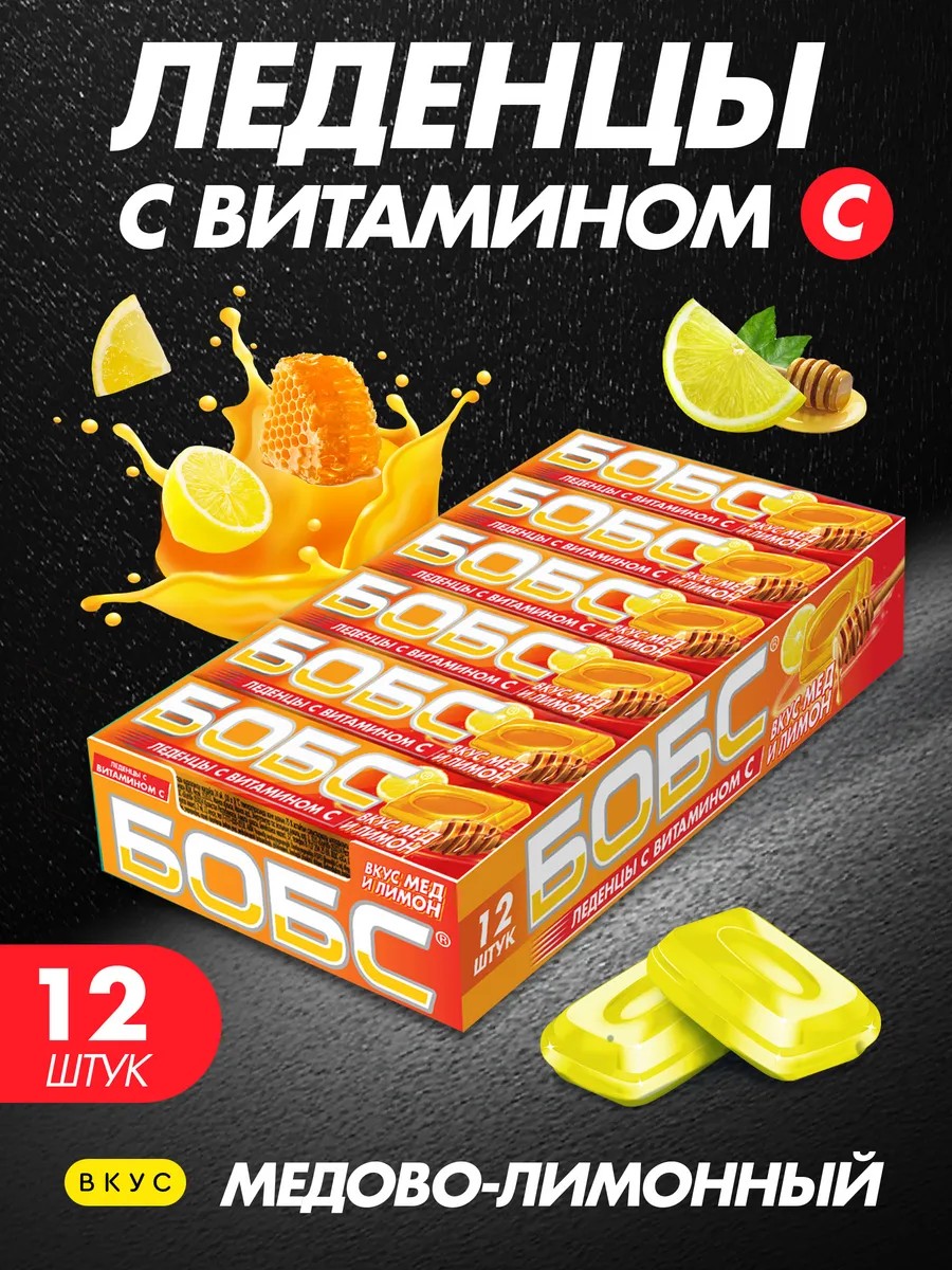 Сладкая сказка, леденцовая карамель «Бобс» с медово-лимонным вкусом и с витамином CЛеденцовая карамель «Бобс» от «Сладкой сказки» успешно продается на российском рынке уже более 25 лет. Это функциональные леденцы, которые способствуют уменьшению першения и хрипоты в горле при голосовых нагрузках. За счёт содержания ментола они освежают дыхание, а благодаря витамину С в составе поддерживают иммунитет. В одном леденце содержится до 5% суточной нормы витамина С для взрослого человека.Медово-лимонные леденцы «Бобс» — лучший выбор для тех, кто ценит сочетание тёплых и мягких вкусов с согревающим эффектом.Леденцы производятся на собственной российской фабрике в городе Иваново с использованием только натуральных ингредиентов.Карамель упакована в стики, в каждом из которых по 10 леденцов. Их удобно брать с собой — они легко помещаются в кармане, сумке и бардачке автомобиля.