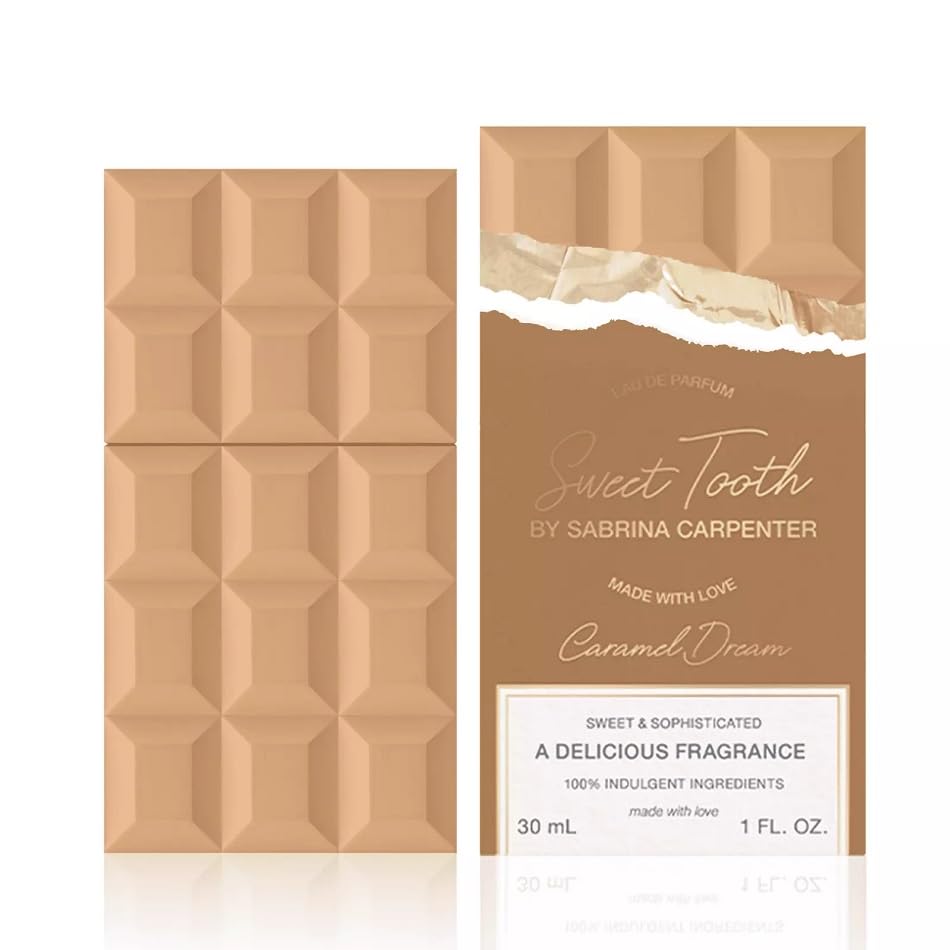 With her debut fragrance, Sabrina is expanding her creative force into a new category. Inspired by Sabrina’s love of desserts, “Sweet Tooth” by Sabrina Carpenter Eau de Parfum indulges the sweet tooth with a fragrance good enough to eat. The scent is sweet, yet sophisticated and reminiscent of the irresistible joy of a candy shop, filled with creamy chocolate, pops of color, swirls, and sweets. The gourmand fragrance features notes of chocolate marshmallow, vanilla, Chantilly cream, and sugared musks. Sweet and petite, the bottle is modeled from the shape of a chocolate bar but reinvented in faceted glass with tones of pink and rose gold. The bottle sparkles with delight and becomes an art piece for all to unwrap and experience. “Creating my own fragrance has always been a dream. Everyone knows that I have a serious sweet tooth, which was the inspiration for the scent. I can’t wait to share this fragrance with my fans.” - Sabrina CarpenterDirections for Use: Apply to clean, dry skin, focusing on pulse points such as neck and wrist. Perfect for Everyday Use and Special Occasions. HEART: Orange Blossom, Tiger Orchid, Dark Chocolate Bean, Vanilla. BASE: Sandalwood, Caramelized Amber, Patchouli, Fluffy, Musk. TOP: Sugared Lemon, Orange Zest, Almond Milk, Freesia. Sabrina Carpenter Sweet Tooth Caramel Dream for Women scent profile:.