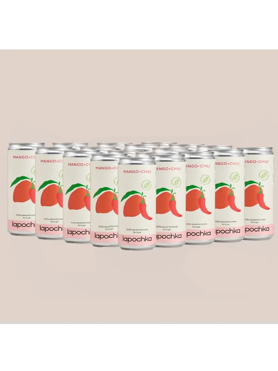 Lapochka Mango-Chili Drink Volume: 330 ml Packaging Type: Metal Can Carbonation Level: Medium Carbonated Features: Natural, No Added Sugar : Refreshing organic lemonade with an unusual combination of tropical mango-chili flavors. The drink is made from pure water and natural fruit juices without the use of artificial flavors and sweeteners. Ingredients: prepared drinking water, sugar, acidity regulator - citric acid, lemonade flavoring, IV sugar coloring, sodium benzoate preservative. Nutritional value per 100 ml: Proteins: 0.0 g Fats: 0.0 g Carbohydrates: 9.0 g Benefits: Natural composition without artificial additives Convenient metal can for carrying Bright fruity taste with tropical notes Invigorating sourness Suitable for those who watch their sugar intake. This drink is perfect for walks, movies, or picnics thanks to its convenient packaging and refreshing taste. The combination of mango and chili creates a unique flavor profile that will delight lovers of exotic tastes.