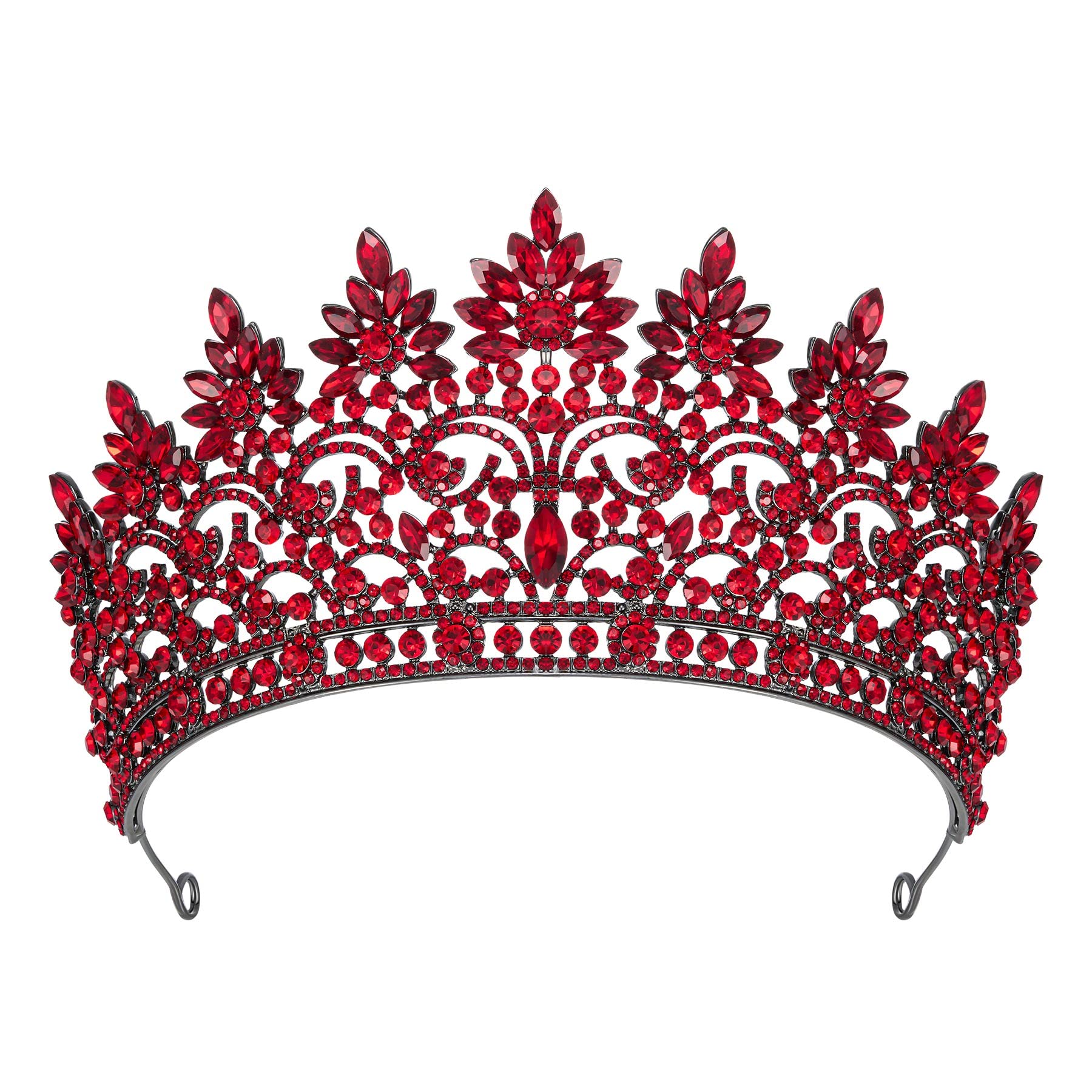 SWEETV Tiara Crown for Women Princess Tiara Diadem Wedding Tiaras for Bride Jeweled Pageant Wedding Headpiece Prom Birthday Hair Accessories Red