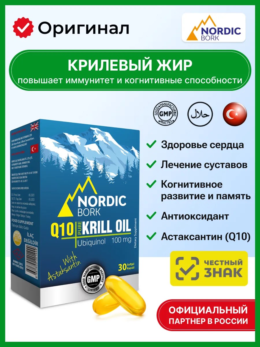 Pure Krill Oil от NORDIC BORK — это биологически активная добавка к пище, которая станет вашим надежным помощником в поддержании здоровья и благополучия. В основе ее состава лежит ценное масло криля, богатое омега-3 жирными кислотами, фосфолипидами, астаксантином, Q10 в активной форме убихинолом. Масло криля, в отличие от рыбьего жира, обладает высокой биодоступностью, что позволяет организму усваивать его компоненты максимально эффективно. Астаксантин, мощный антиоксидант, защищает клетки от повреждения свободными радикалами, а Q10 участвует в энергетическом обмене клеток, поддерживая здоровье сердца и сосудов. Регулярный прием Pure Krill Oil может способствовать укреплению иммунитета, улучшению работы мозга и памяти, а также поддержанию здоровья сердечно-сосудистой системы.