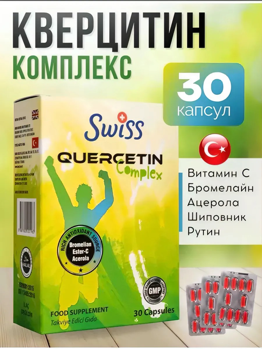 Swiss bork Кверцетин 250мг в капсулах, антиоксидант. Турция