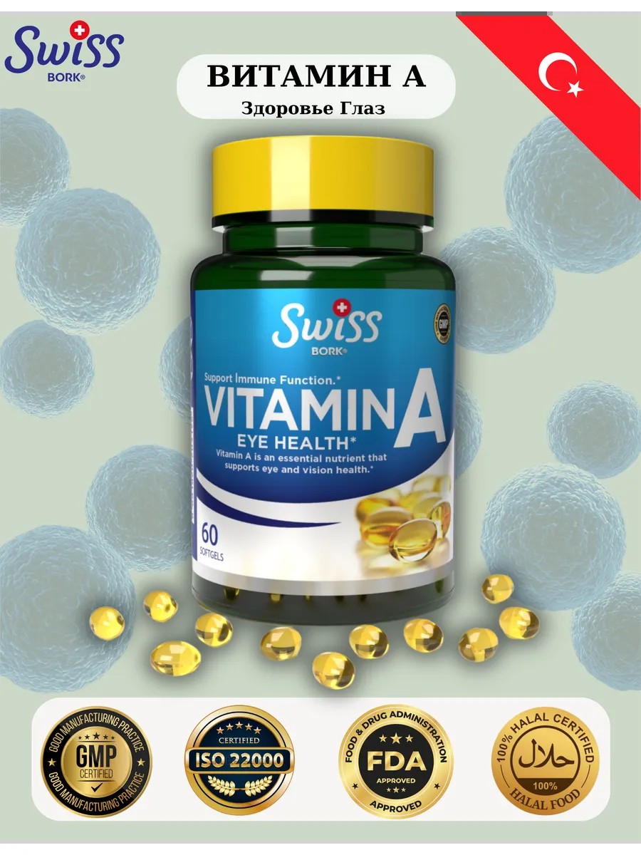 Swiss bork SWISSBORK Витамин A (10.000 IU) в Мягких Капсулaх, Турция