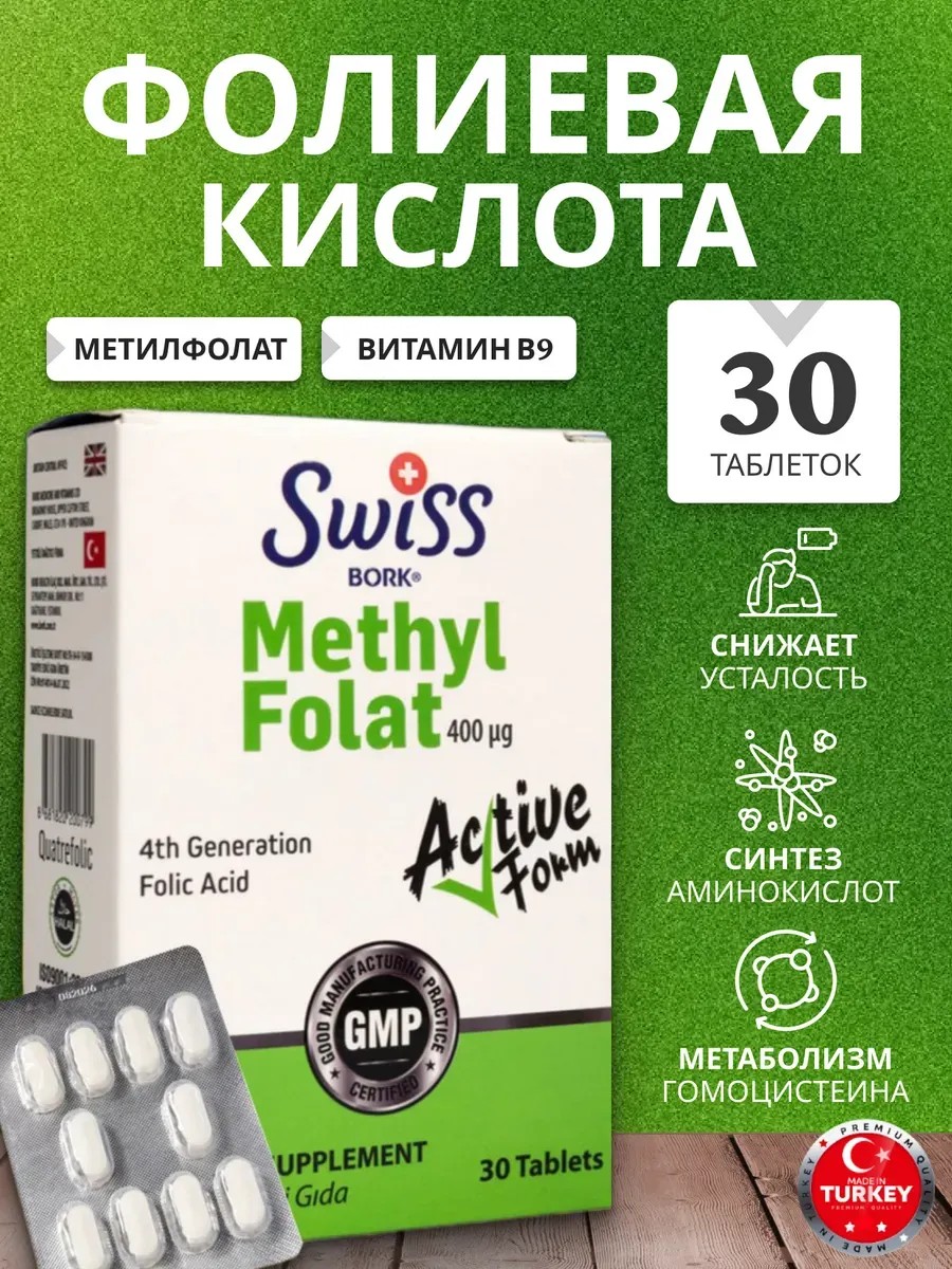 | Комплектация | Swiss Bork Methyl Folat 400мкг - 30 таблеток |