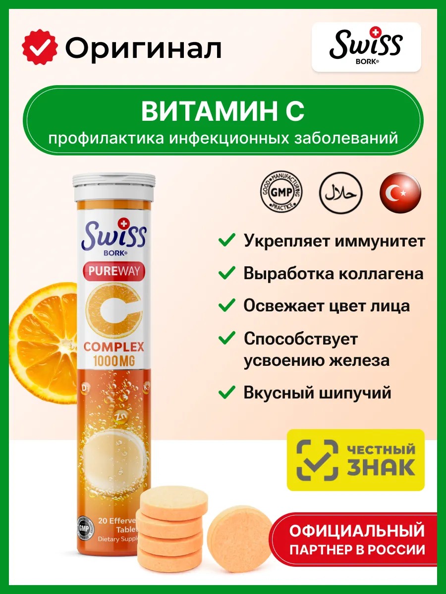 Swiss bork Витамин С 1000мг PureWay шипучие
