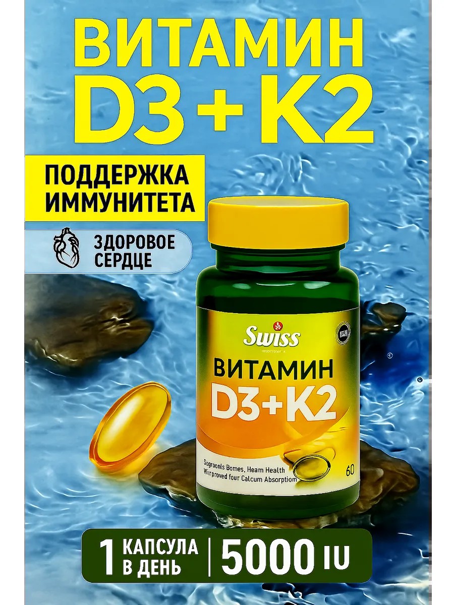 Витамин D3 + K2, 60 капсул — комплекс для костей, сердца и иммунитета
