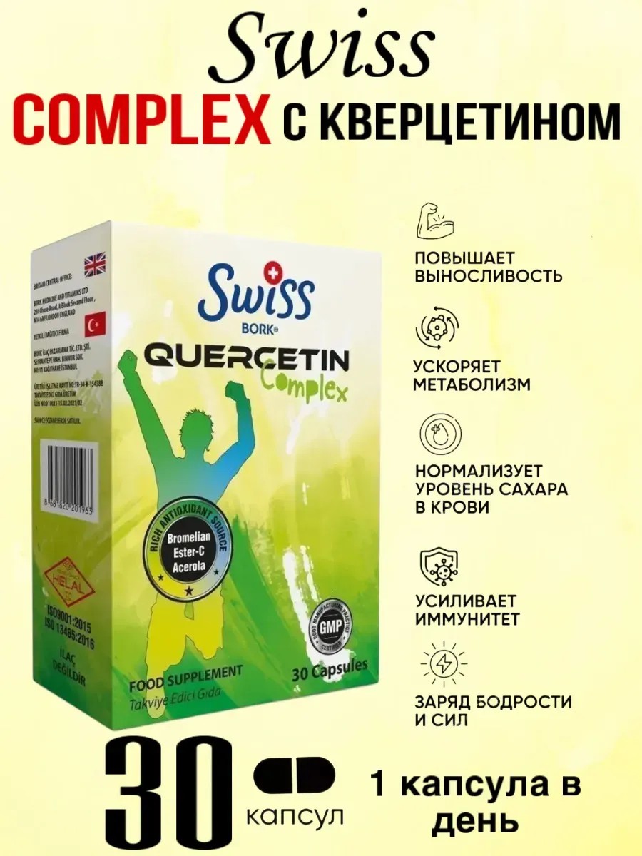 Принимайте Quercetin Complex от Swiss Bork ежедневно, чтобы поддерживать свое общее здоровье, защищать свой организм от повреждений и поддерживать сильную иммунную систему. Этот продукт изготовлен с использованием только высококачественных и натуральных ингредиентов, чтобы гарантировать вашему организму только самое лучшее.