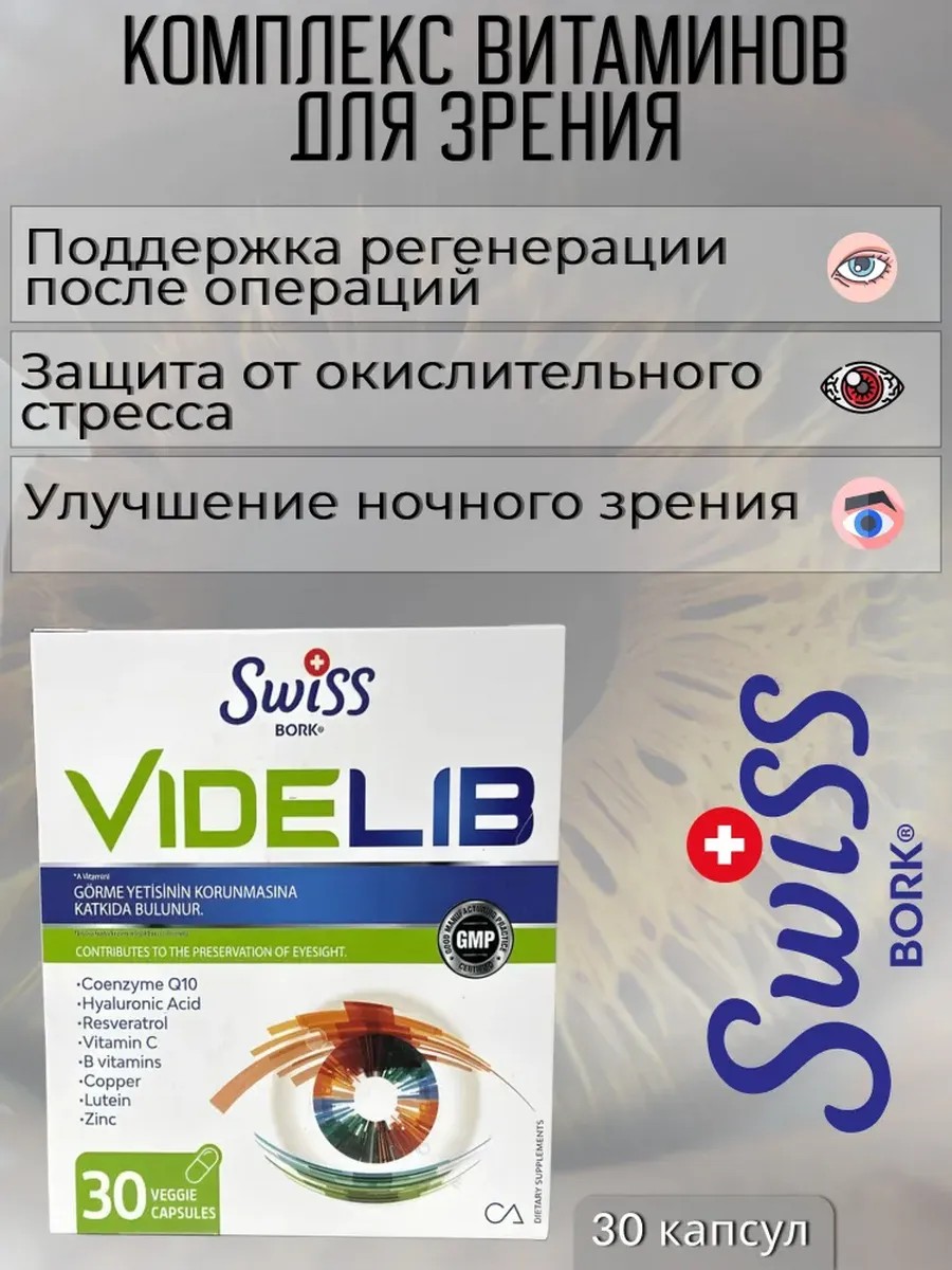 Swiss Bork Videlib — это идеальное решение для тех, кто хочет поддерживать здоровье глаз и улучшать качество зрения с помощью высококачественного комплекса витаминов и антиоксидантов.