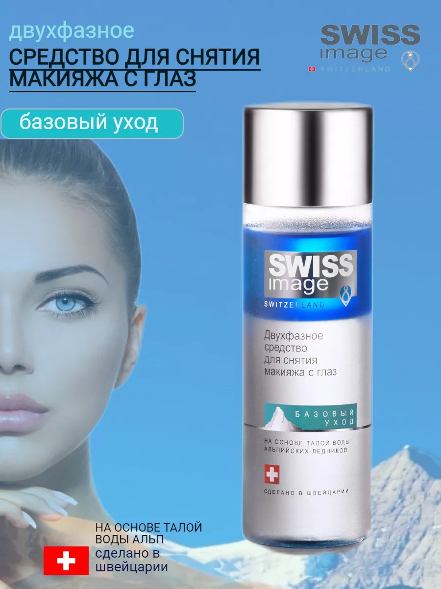 Средство для снятия макияжа, бережно снимает даже водостойкий макияж с нежной области вокруг глаз и губ. Благодаря двухфазной текстуре, в которой масла, содержащиеся в верхнем темном слое, эффективно удаляют стойкий макияж. Светлый слой - легкий тонизирующий лосьон, который дарит коже ощущение комфорта. Не вызывает раздражение и ощущение стянутости. Талая вода Альпийских ледников - увлажняет и защищает кожу на протяжении дня. Подходит для людей, которые носят контактные линзы и очки. двухфазное средство для снятие макияжа - отличный аналог гидрофильного масла. Легкий тоник для лица увлажняет и питает кожу вокруг глаз и губ. Средство для снятия стойкого макияжа бережно очищает кожу. Комплекс масел увлажняет и тщательно очищает кожу лица. Швейцарская косметика Swiss Image - это косметка, созданная на основе талой воды Альпийских ледников. Натуральная косметика подходит для чувствительной кожи лица и губ. После снятия макияжа необходимо тщательно умыть лицо. После очищения нанесите крем. Веганская жидкость для снятия макияжа - это веганская косметика, которая не тестируется на животных и которая не содержит в своем составе компонентов животного происхождения