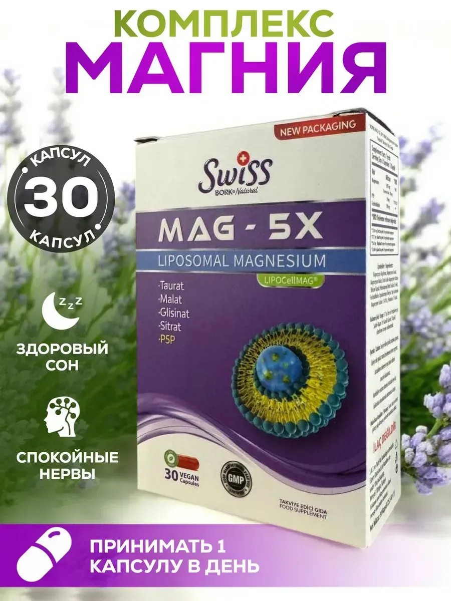 Magnesium 5X by Swiss Bork is an advanced formula that includes five different forms of magnesium, providing comprehensive support for the body.