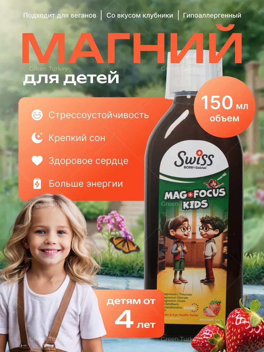 Рассмотрим свойства каждого компонента и рекомендации по приему. Состав и свойства: 1. Магний (элементарный магний - 98 мг) - Из 605 мг магния L-треонат (50 мг магния): Магний L-треонат может улучшать когнитивные функции, поддерживать память и внимание. - Из 220 мг магния цитрат (25 мг магния): Цитрат магния легко усваивается организмом, помогает в поддержке нервной системы и мышечного тонуса. - Из 163 мг магния бисглицинат (23 мг магния): Бисглицинат магния обладает хорошей биодоступностью, способствует снижению стресса и улучшению сна. 2. Фосфатидилсерин (100 мг) - Это важный фосфолипид, который играет ключевую роль в функционировании мозга. Он улучшает когнитивные функции, память и внимание. 3. Фосфатидилхолин (100 мг) - Основной компонент клеточных мембран, необходимый для поддержания их целостности и функциональности. Также участвует в передаче нервных импульсов. 4. Цинк (7,5 мг) - Важный микроэлемент, участвующий в более чем 300 ферментативных реакциях в организме. Цинк поддерживает иммунную систему, способствует заживлению ран и улучшению зрения. 5. Масло виноградной косточки (10 мг) - Богато антиоксидантами, способствует защите клеток от оксидативного стресса, улучшает здоровье кожи и сердечно-сосудистой системы. 6. Витамин В6 (5 мг) - Необходим для нормального функционирования нервной системы, участвует в синтезе нейротрансмиттеров и гемоглобина, помогает в метаболизме аминокислот и углеводов. Рекомендации по приему: Перед началом приема сиропа рекомендуется проконсультироваться с врачом, чтобы убедиться, что он подходит для вашего ребенка. Обычная доза составляет 5 мл (1 чайная ложка) в день. Сироп можно принимать в любое время дня, желательно вместе с пищей для лучшего усвоения. Общие указания: - Хранение: Храните сироп в прохладном, сухом месте, вдали от прямых солнечных лучей и в недоступном для детей месте