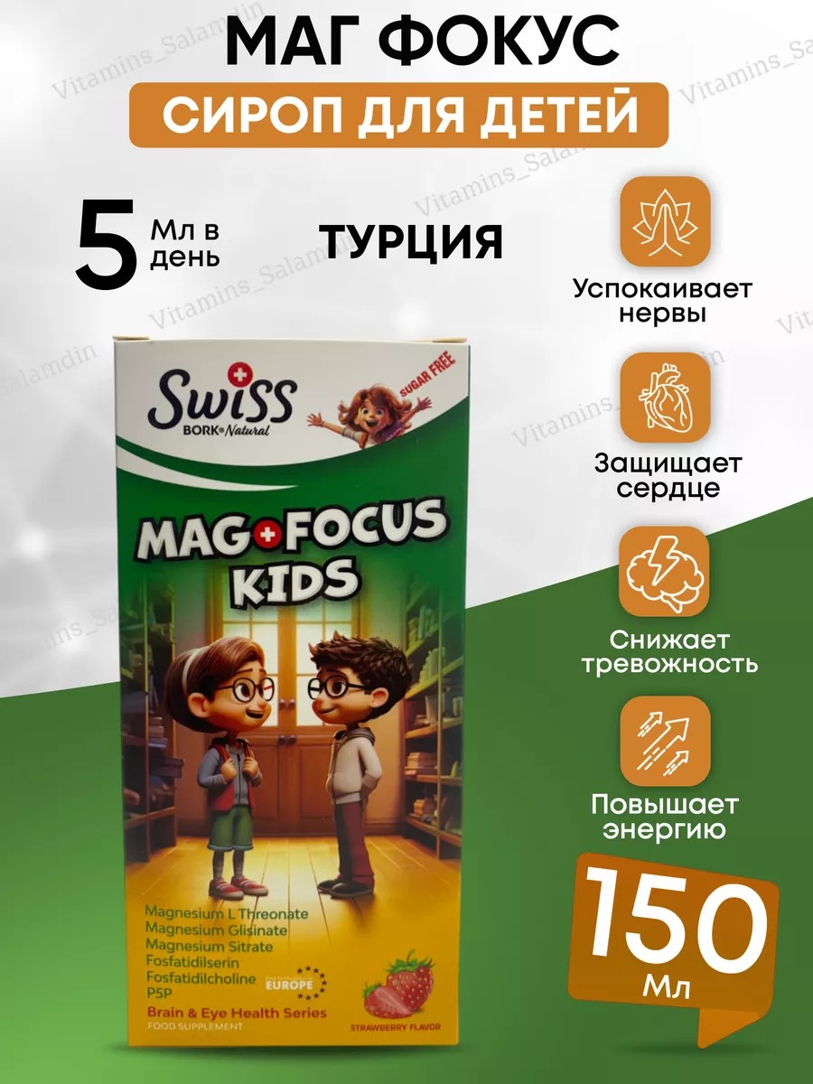 The children's syrup containing the listed ingredients combines many beneficial substances, each of which plays an important role in maintaining the health and normal development of the child. Let's consider the properties of each component and recommendations for use. Composition and properties: 1. Magnesium (elemental magnesium - 98 mg) - Of 605 mg magnesium L-threonate (50 mg magnesium): Magnesium L-threonate can improve cognitive function, support memory and attention. - Of 220 mg magnesium citrate (25 mg magnesium): Magnesium citrate is easily absorbed by the body, helps support the nervous system and muscle tone. - Of 163 mg magnesium bisglycinate (23 mg magnesium): Magnesium bisglycinate has good bioavailability, helps reduce stress and improve sleep. 2. Phosphatidylserine (100 mg) - This is an important phospholipid that plays a key role in brain functioning. It improves cognitive function, memory and attention. 3. Phosphatidylcholine (100 mg) - The main component of cell membranes, necessary for maintaining their integrity and functionality. Also involved in the transmission of nerve impulses. 4. Zinc (7.5 mg) - An important trace element involved in more than 300 enzymatic reactions in the body. Zinc supports the immune system, promotes wound healing and improves vision. 5. Grape seed oil (10 mg) - Rich in antioxidants, helps protect cells from oxidative stress, improves skin health and the cardiovascular system. 6. Vitamin B6 (5 mg) - Necessary for the normal functioning of the nervous system, is involved in the synthesis of neurotransmitters and hemoglobin, helps in the metabolism of amino acids and carbohydrates. Directions: Before starting to take the syrup, it is recommended to consult a doctor to make sure it is suitable for your child. The usual dose is 5 ml (1 teaspoon) per day. The syrup can be taken at any time of day, preferably with food for better absorption. General instructions: - Storage: Store the syrup in a cool, dry place, away from direct sunlight and out of the reach of children. - Side effects: The syrup is generally well tolerated, but in rare cases, allergic reactions or gastrointestinal upset may occur. If side effects occur, discontinue use and consult a doctor. - Contraindications: Individual intolerance to the components of the syrup. This syrup can serve as an excellent supplement to a child's diet, helping to maintain their health and development thanks to its rich set of nutrients.