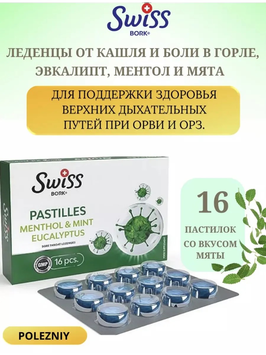 swiss Леденцы PASTILLES с ментолом и эвкалиптом