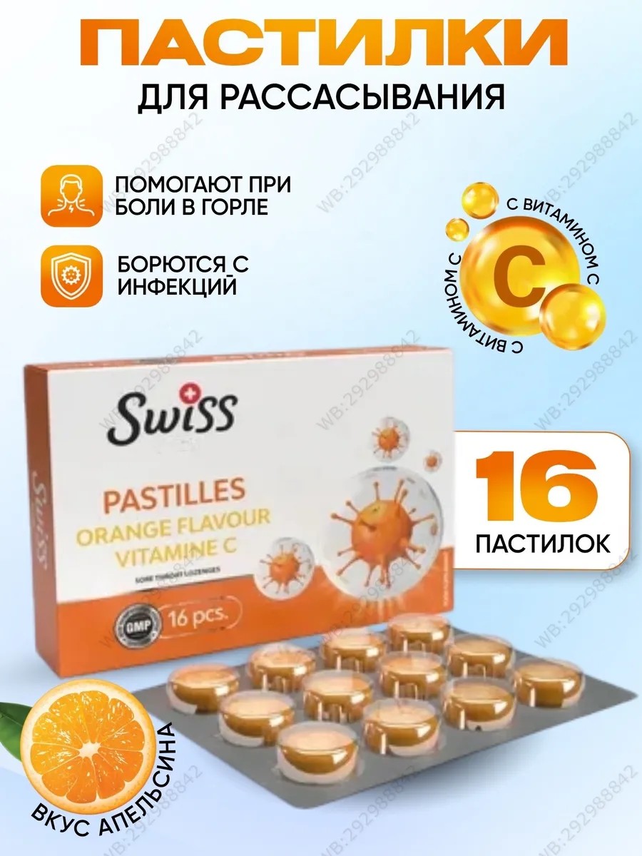 Леденцы от боли в горле Swiss Апельсин-Витамин С 16 Леденцов