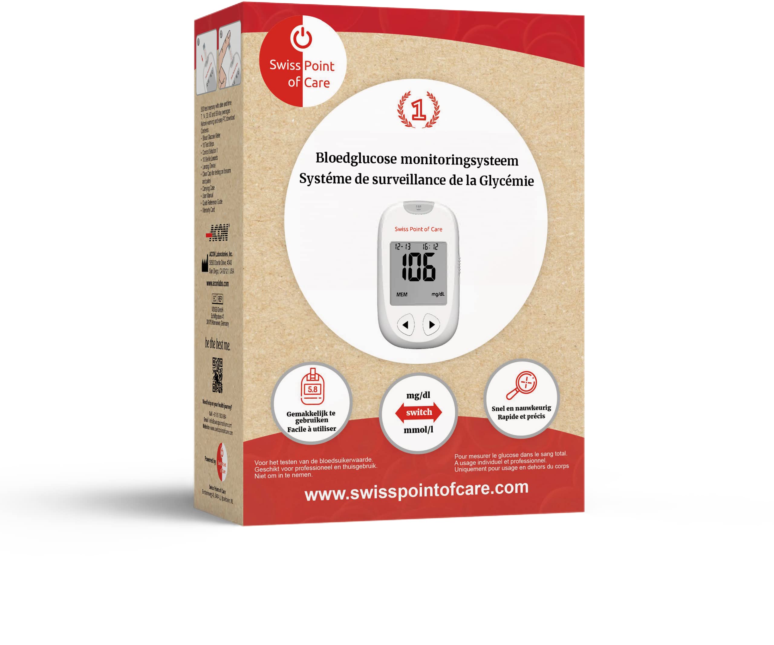 We are there for you: Swiss Point of Care has been with a healthy lifestyle for 14 years and supports you with professional advice, high -quality and natural nutritional supplements, high -precision reliable measuring devices along with accessories and a large portion of experience in the point of care area.With this set you get everything you need for simple and fast measurement: the measuring device in a practical storage bag made of polyester, 10 glucose test strips, 10 lancets and a puncture aid.The glucose test strips contained in the set provide the results in a few moments, simply wet blood with a drop of blood, wait a few seconds and read the result from the Swiss Point of Care on Call Extra Extra.Our Swiss Point of Care Glucose measuring device is identified with the proven on call extra measuring device and now in a fresh design.All measuring products from the Swiss Point of Care measuring devices series are suitable for the simple measurement of glucose values ??by humans directly at home.With the Swiss Point of Care Glucose measuring device you will receive highly precise results after 4 seconds.In this way you ensure continuous control of the glucose concentration in the body.The unit of measurement of the measured values ??can be selected between MMOL/L and MG/DL with this device.