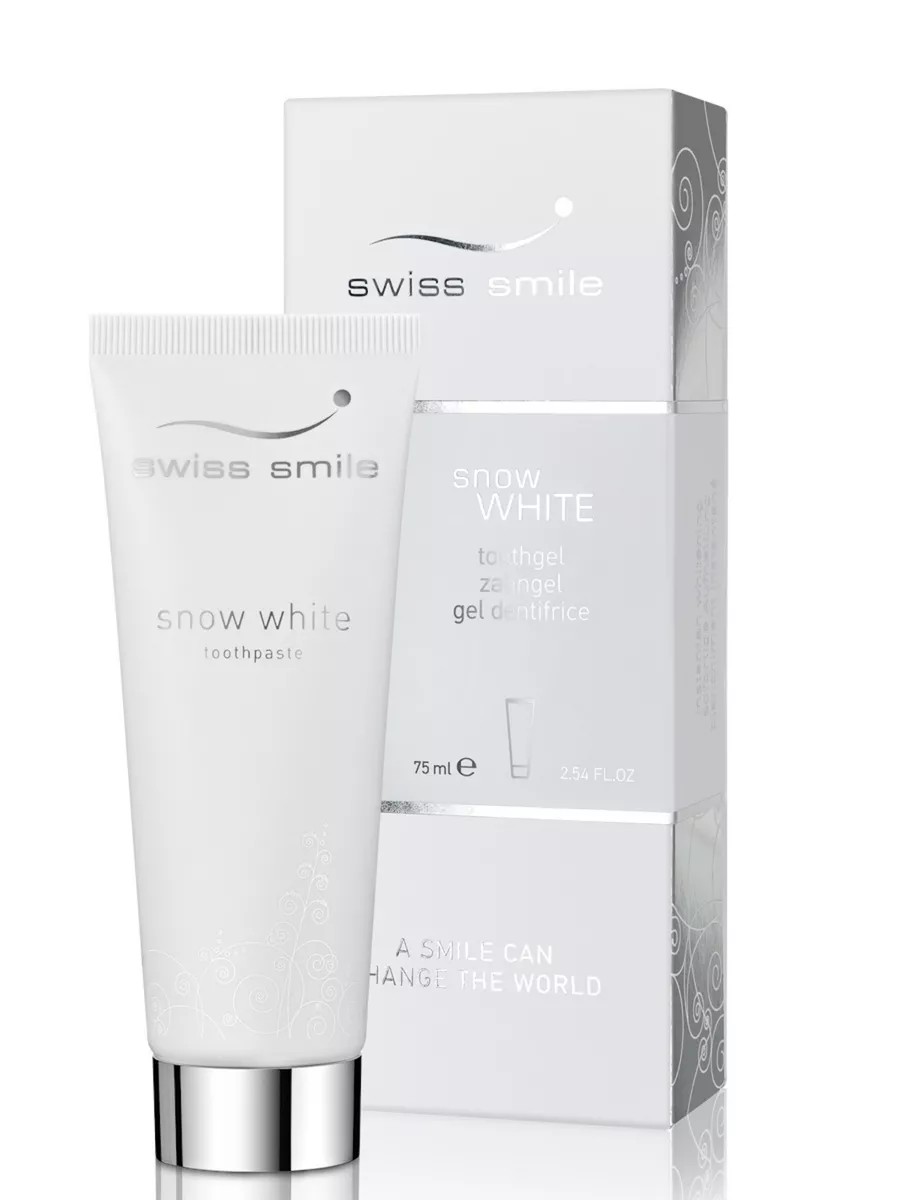 SNOW WHITE Whitening Toothpaste, 75ml. The power of whitening from Swiss Smile: a highly effective formula removes stubborn stains and leaves teeth naturally white and bright.