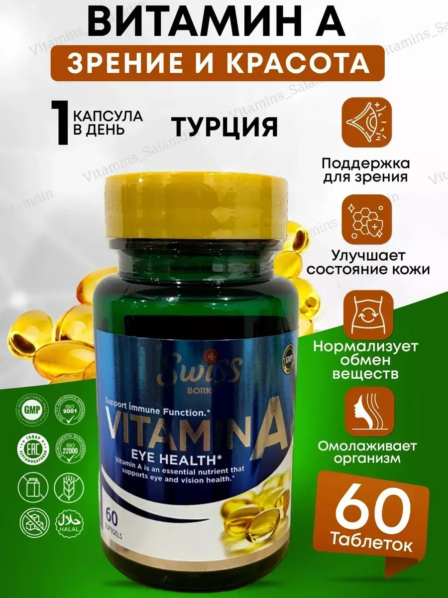 Здоровье глаз: Витамин А играет важную роль в поддержании нормального зрения, особенно ночного. Он необходим для синтеза родопсина — пигмента, находящегося в сетчатке глаз, который отвечает за восприятие света. Дефицит витамина А может привести к ночной слепоте и другим проблемам со зрением.