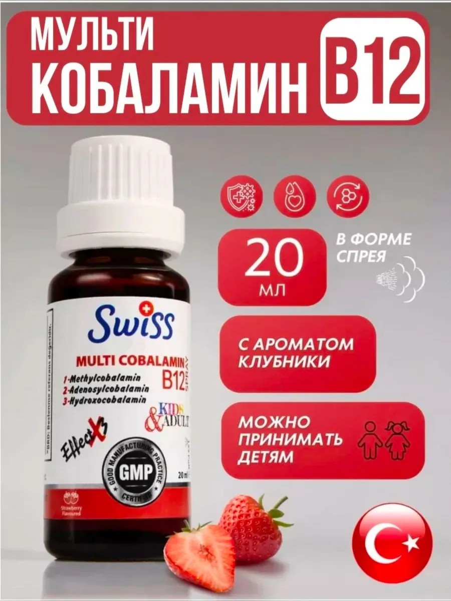 Vitamin B12 is essential for normal cell division (hematopoiesis) and DNA formation. It prevents anemia, is essential for nervous system function, and promotes concentration and memory. Vitamin B12 (or cyanocobalamin) is necessary for red blood cell formation, neuron development, and DNA synthesis. A deficiency can lead to anemia, loss of balance, numbness in the extremities, fatigue, and memory impairment. Vitamin B12 Intake: The daily requirement for vitamin B12 depends on age. For adults, it is 2.4 mcg per day; for pregnant and breastfeeding women, it is slightly higher. Vitamin B12 was traditionally prescribed as injections, but now a dose of 1,000 mcg orally per day has been shown to be effective, even in people with poor absorption and low acidity. If you have gastrointestinal problems, vitamin B12 will be poorly absorbed from food. However, taking higher doses will solve the problem. B vitamins interact with each other. This interaction occurs, for example, with vitamins B9 and B5. However, there is also a reason to take vitamin B12 alone, as the cobalt ion in it destroys other non-B vitamins. Vitamin B12 interacts with some medications, so if you are taking any medications, especially for heartburn, ulcers, and diabetes, be sure to consult a doctor. How can you tell how much vitamin B12 is in your body? A methylcobalamin deficiency can be suspected by a homocysteine test. Megaloblastic anemia is another marker of methylcobalamin or vitamin B12 deficiency. It is diagnosed with a blood test. Vitamin B12 should be taken separately from other vitamins, as it can destroy the beneficial properties of other vitamins. Vitamin B12 is best absorbed with vitamins B9 and B5. It is not recommended to combine other vitamins with B12. Swiss Bork Ocean Methyl B12 contains only B12, making it ideal for consumption. It contains 1000 mcg per spray. Each 10 ml spray contains 66 sprays of Vitamin B12. Directions: Adults are recommended to take one spray under the tongue daily.
