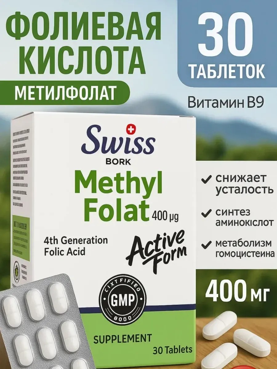 Активная форма фолиевой кислоты Swiss Bork - это высококачественный биологически активный комплекс, созданный для поддержки здоровья нервной системы и улучшения обмена веществ. Этот препарат служит отличным источником питательных веществ, необходимых для нормального функционирования организма.