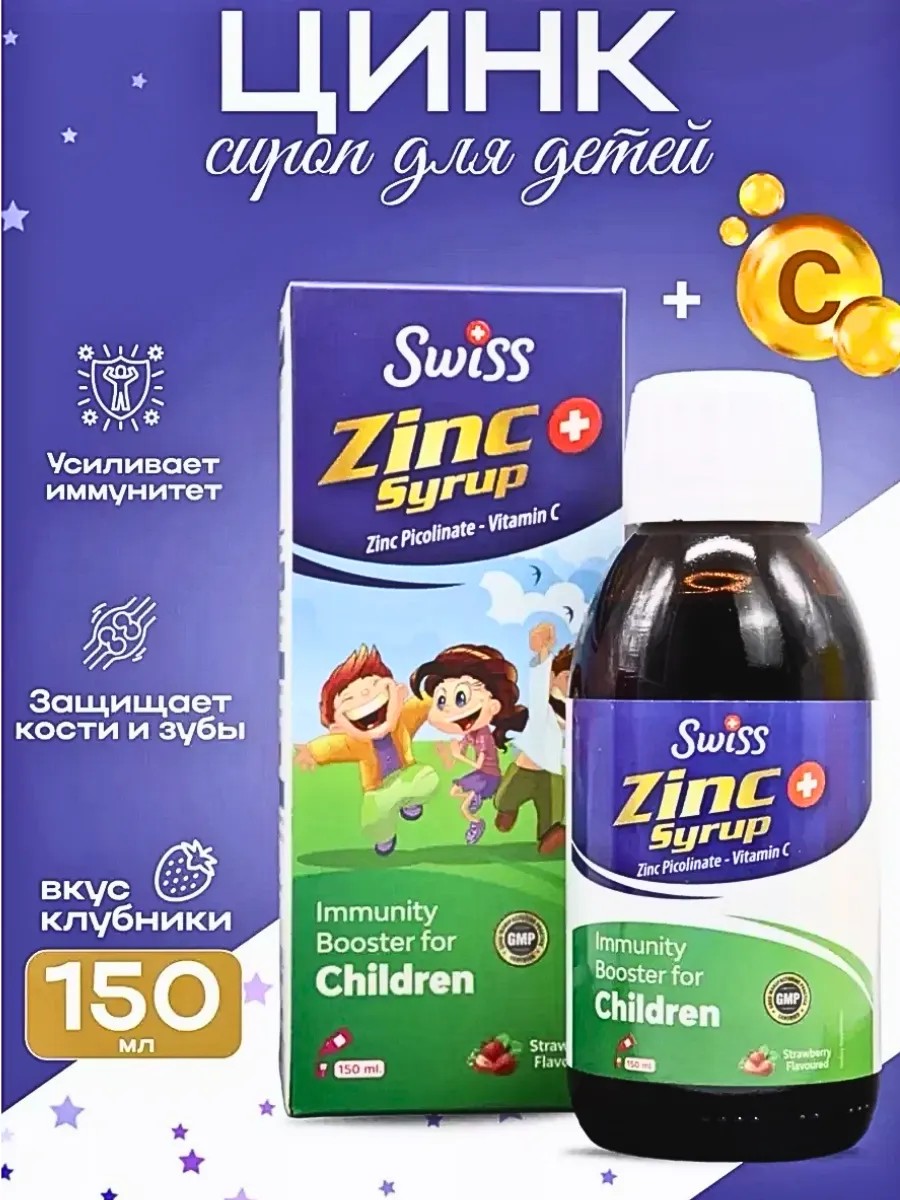 | Комплектация | картонная коробка; Стеклянный флакон с крышкой; 150 мл сиропа с Цинком и Витамином С для детей |