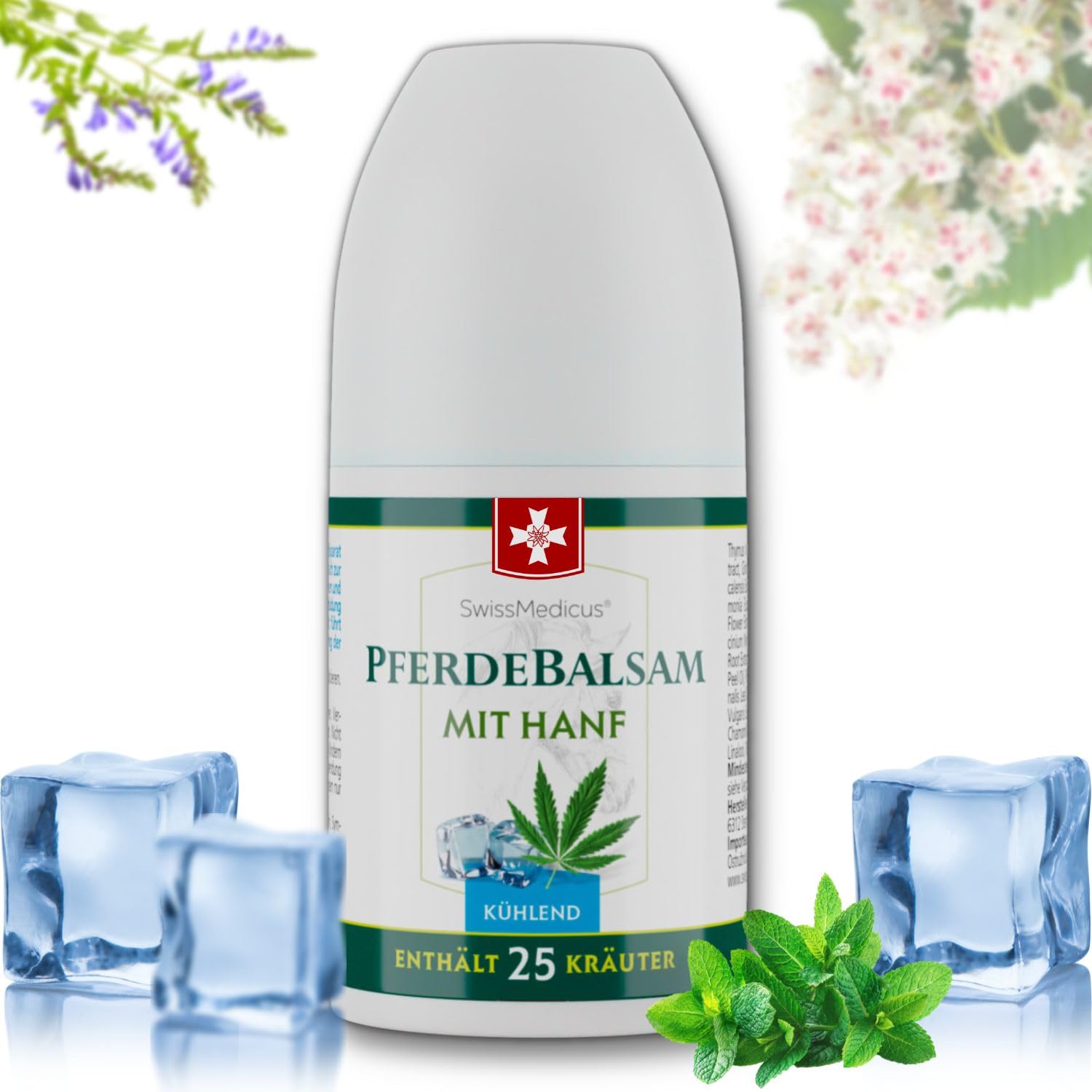 ?? Advantage of using the roll-on can be applied directly to the skin without rubbing your hands directly and then z.B. without the menthol.For seniors with restricted mobility, it is easier to treat the more difficult access to the body.The uncomplicated application without applying to the hands is also valued by physiotherapists in the treatment room and athletes in the terrain, where there is no water to wash.???? Application instructions: Application 3-5 times a day to the joints or painful muscles (back, shoulder, wrist, hand, thigh, knee, ankle, foot, ...) in self-massage with the scoop of the scooter.???? recommended for athletes and for people who suffer from muscular pain such as tension, back pain, pain and pain.?? Cooling horse balm with hemp acts as an effective means of facilitating and refreshing the sore muscles and the feeling of ""heavy legs"".???? Traditional Swiss recipe with 25 herbal extracts and hemp.?? Vorteil der anwendung Mit dem Roll-on kann die Emulsion direkt auf die Haut aufgetragen werden, ohne sich die Hände zu reiben und dann z. B. ohne das Menthol in die Augen gelangt. Für Senioren mit eingeschränkter Beweglichkeit ist es einfacher, die schwieriger erreichbaren Stellen am Körper zu behandeln. Die unkomplizierte Anwendung ohne Auftragen auf die Hände wird auch von Physiotherapeuten im Behandlungsraum und Sportlern im Terrain geschätzt, wo kein Wasser zum Händewaschen vorhanden ist. ???? Anwendungshinweise: Anwendung 3-5 mal täglich auf die Gelenke oder schmerzhaften Muskeln (Rücken, Schulter, Handgelenk, Hand, Oberschenkel, Knie, Knöchel, Fuß, ...) in Selbstmassage mit der Kugel des Rollers. ???? Empfohlen für Sportler und für Menschen, die unter muskulären Schmerzen wie Verspannungen, Rückenschmerzen, Schmerzen und Schmerzen leiden. ?? Kühlender Pferdebalsam mit Hanf wirkt als wirksames Mittel zur Erleichterung und Auffrischung beim Muskelkater und beim Gefühl der „schweren Beine”. ???? Traditionelle Schweizer Rezeptur mit 25 Kräuterextrakten und Hanf.SwissMedicus Pferdebalsam mit hanf - Roll-On 90 ml - intensive Kühlende Wirkung für Muskeln & Gelenke - Aktivgel für Muskеln & Gelenke - Wirkliche Erleichterung