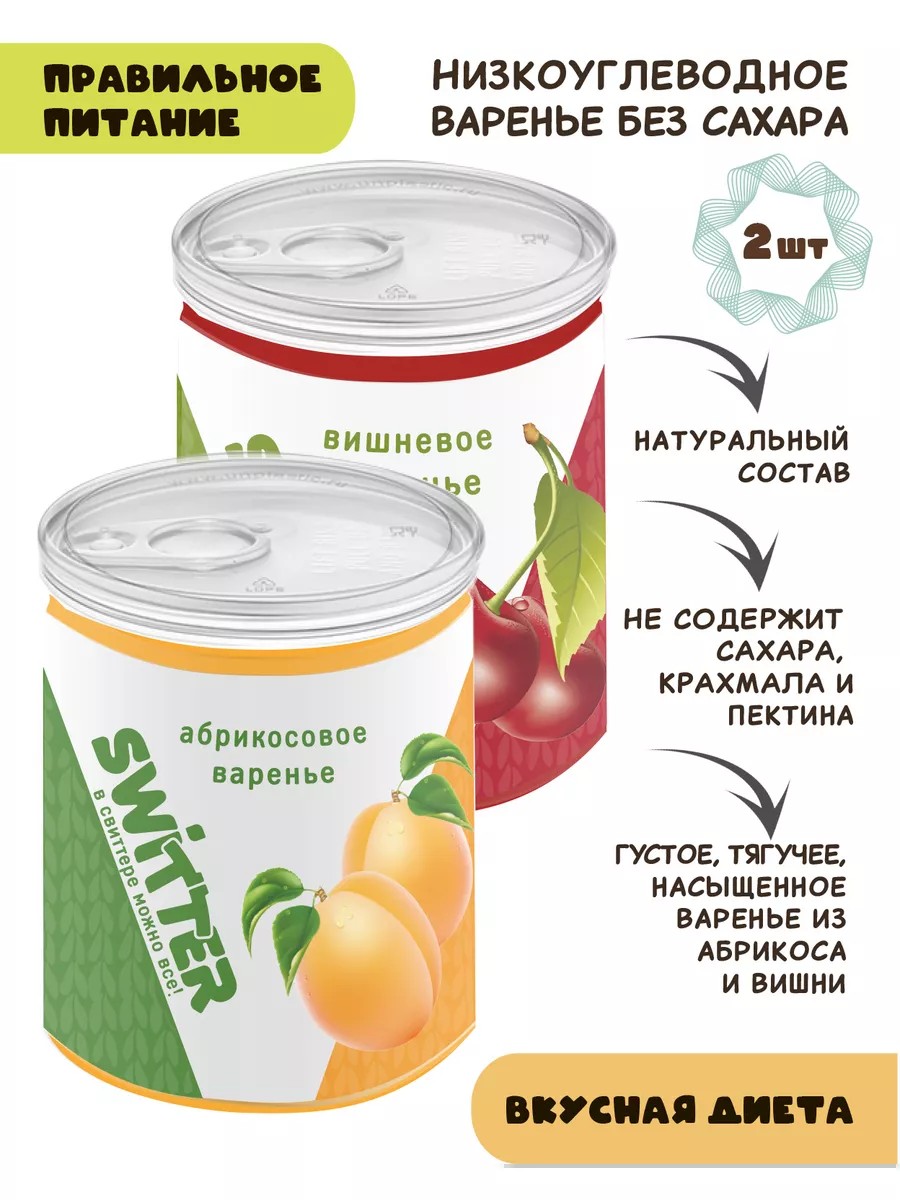 Абрикосовое и вишневое варенье без сахара, 2 шт