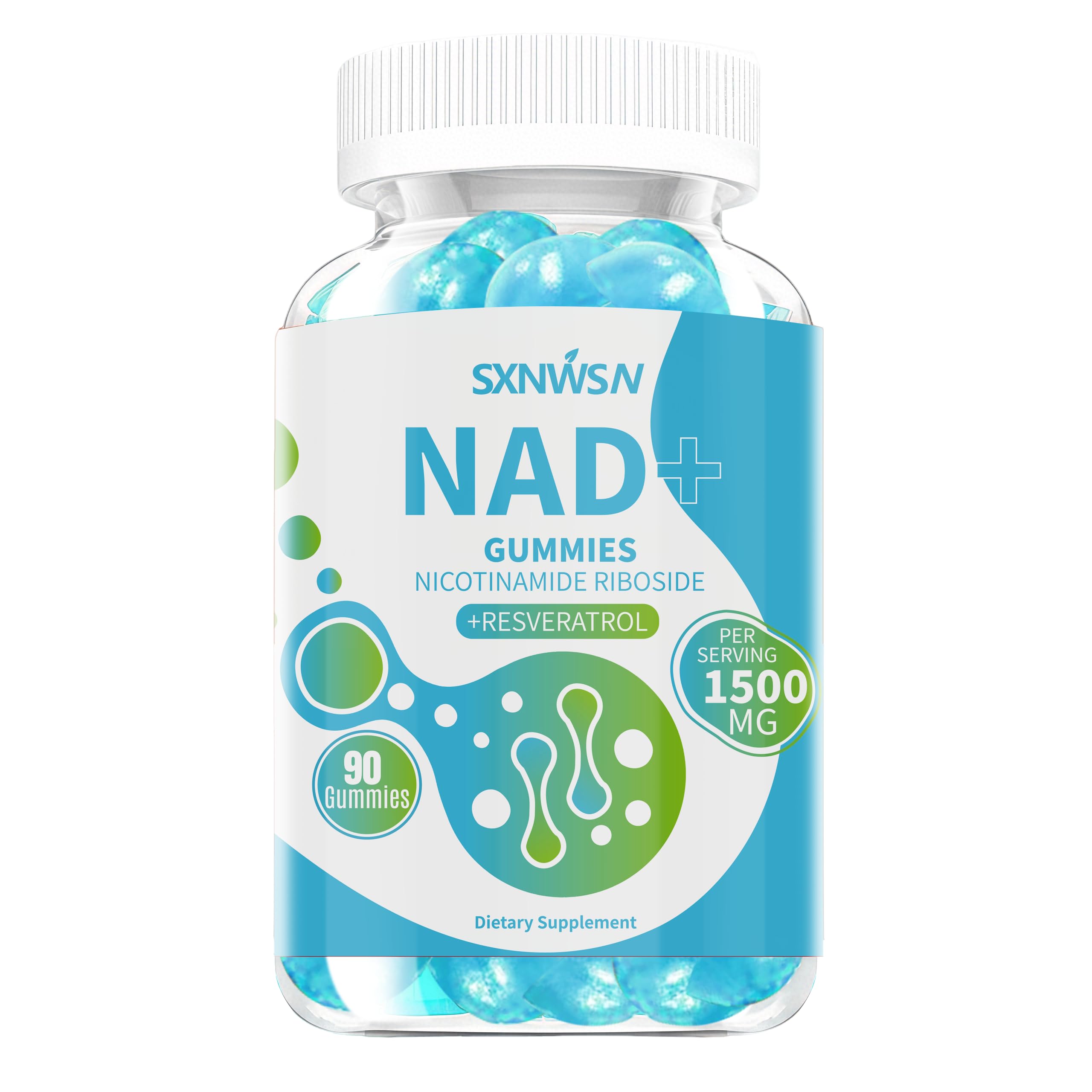 SXNWSN NAD Supplement NAD+ Gummies with Nicotinamide Riboside Trans-Resveratrol Quercetin - Anti-Aging Energy Support & Cellular Health Sugar-Free Blueberry Flavor 90 ct