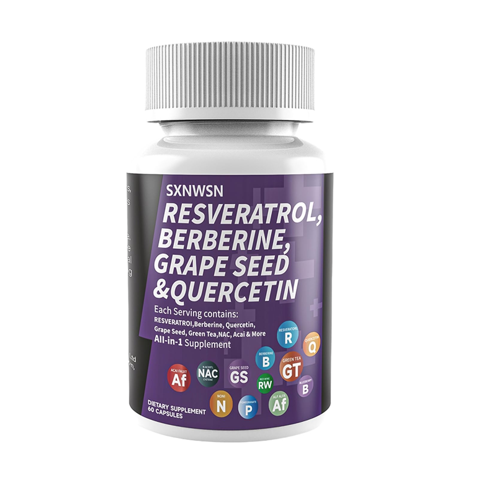 SXNWSN Resveratrol & Berberine Complex 60 Capsules - Antioxidant Support with Grape Seed Quercetin & NAC Promotes Healthy Cellular Function & Metabolism for Women & Man