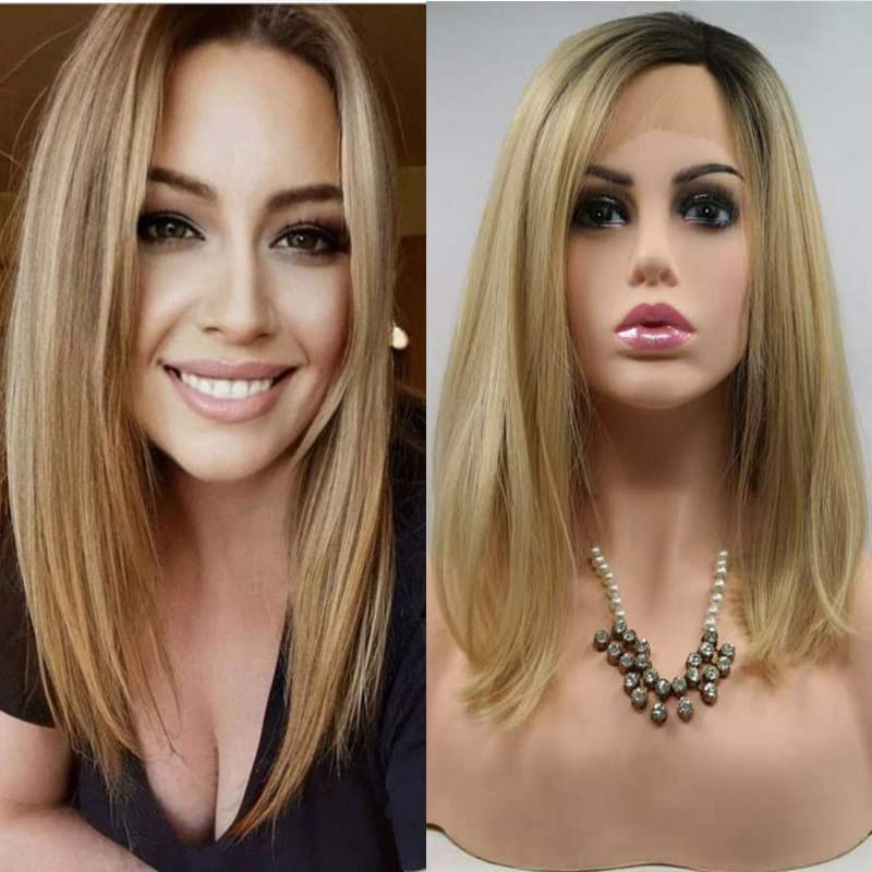 Wear the wig: 1. stretch the hair network with your hands and then pull it from the forehead to the neck. 2. Place the sewn side down, press the other side with two hands and pull the wig up until the network covers your hair. 3. Add the seam side to your hairline and hide your hair with your fingers.When you're done, use hairpins to fix your hair on the rear side and not at the top. 4. It is recommended to fix the hair from the front, at the back, left and right. Care: The wig must be maintained after use.If the wig is dry, disassembled or not curly, you can spray the wig 2-3 times with a wig care solution.Note that the solution is 15 to 25 cm from the wig when spraying and it is only sprayed little, especially in the middle and at the end of the wig.Comb the wig gently from one end to the other.The inside can sometimes be knotted, then you have to carefully comb it with a special comb. 1. comb with your fingers through a handful of hair. 2. Comb the hair gently from the end of the wig with a special comb. 3. Roll the hair bands towards the tips. 4. In order to extend the lifespan, it is better to keep the wig away from great heat. Advantages: 1. All wigs have been made by hand by professional skilled workers.The hair is 100 made of high-temperature fibers that look like real hair. 2. With integrated, breathable power cap. 3. Fashionable hairstyle with natural look, soft hair.Suitable for parties and in everyday life.No damage to your own hair. 4. The interior can be adjusted freely, you can adjust it as you want. 5. You can cut or trim them as desired.It can be blowed (cold) or styled with the curling iron (not at too high temperature). Storage of the wig: We advise you to store the wig on a wig stand or on a doll in a cool and dry place and keep the wig in a hair network or a plastic bag.synthetic hair has a great memory effect, the curls are more flexible and stronger.Art hair, heat -resistant up to 180 C.Scope: 57.15 cm stretched, medium -sized cap (average size) with adjustable straps and 3 combs.Half hand-bound front lace wig with 6.4 cm parting at the front.100 soft, heat -resistant fibers.Tragen der Perücke: 1. Dehnen Sie das Haarnetz mit Ihren Händen und ziehen Sie es dann von der Stirn bis zum Nacken. 2. Legen Sie die genähte Seite nach unten, drücken Sie die andere Seite mit zwei Händen und ziehen Sie die Perücke hoch, bis das Netz Ihre Haare bedeckt. 3. Passen Sie die Nahtseite an Ihren Haaransatz an und verstecken Sie Ihre Haare mit Ihren Fingern. Wenn Sie fertig sind, verwenden Sie Haarnadeln, um Ihr Haar auf der hinteren Seite und nicht oben zu fixieren. 4. Empfohlen wird eine Fixierung des Haars von vorn, hinten, links und rechts. Pflege: Die Perücke muss nach dem Gebrauch gepflegt werden. Wenn die Perücke trocken, zerzaust oder nicht lockig ist, können Sie die Perücke 2-3 Mal mit einer Perücken-Pflegelösung besprühen. Beachten Sie, dass die Lösung beim Besprühen 15 bis 25 cm von der Perücke entfernt ist und diese nur wenig besprüht wird, insbesondere in der Mitte und am Ende der Perücke. Kämmen Sie die Perücke sanft von einem zum anderen Ende. Die Innenseite kann manchmal verknoten, dann müssen Sie sie vorsichtig mit einem speziellen Kamm durchkämmen. 1. Mit den Fingern durch eine Handvoll Haare kämmen. 2. Kämmen Sie die Haare vom Ende der Perücke sanft mit einem speziellen Kamm. 3. Rollen Sie die Haarbänder in Richtung der Spitzen. 4. Um die Lebensdauer zu verlängern, ist es besser, die Perücke von großer Hitze fernzuhalten. Vorteile: 1. Alle Perücken sind von professionellen Facharbeitern von Hand hergestellt worden. Die Haare sind zu 100 aus Hochtemperatur-Fasern gefertigt, die wie Echthaar aussehen. 2. Mit integrierter, atmungsaktiver Netzkappe. 3. Modische Frisur mit natürlichem Look, weiches Haar. Für Partys und im Alltag geeignet. Keine Beschädigung Ihrer eigenen Haare. 4. Das Innere kann frei justiert werden, man kann es anpassen, wie man will. 5. Sie können sie beliebig schneiden oder trimmen. Sie kann geföhnt (kalt) oder mit dem Lockenstab gestylt werden (nicht auf allzu hoher Temperatur). Lagerung der Perücke: Wir raten dazu, die Perücke auf einem Perückenständer oder auf einer Puppe an einem kühlen und trockenen Ort zu lagern und die Perücke in einem Haarnetz oder einer Plastiktüte aufzubewahren.Synthetisches Haar hat einen tollen Memory-Effekt, die Locken sind flexibler und kräftiger. Kunsthaar, hitzebeständig bis zu 180 C. Umfang: 57,15 cm gedehnt, mittelgroße Kappe (durchschnittliche Größe) mit verstellbaren Riemen und 3 Kämmen. Zur Hälfte handgebundene Front-Lace-Perücke mit 6,4 cm Scheitel vorne. 100 weiche, hitzebeständige Fasern.Sylvia, Kurzhaarperücke Celebrity Hairstyle, blonder Bob, Ombré-Stil, kurzes glattes Haar, Kunsthaar, Lace-Front, hitzebeständig, 35,6 cm