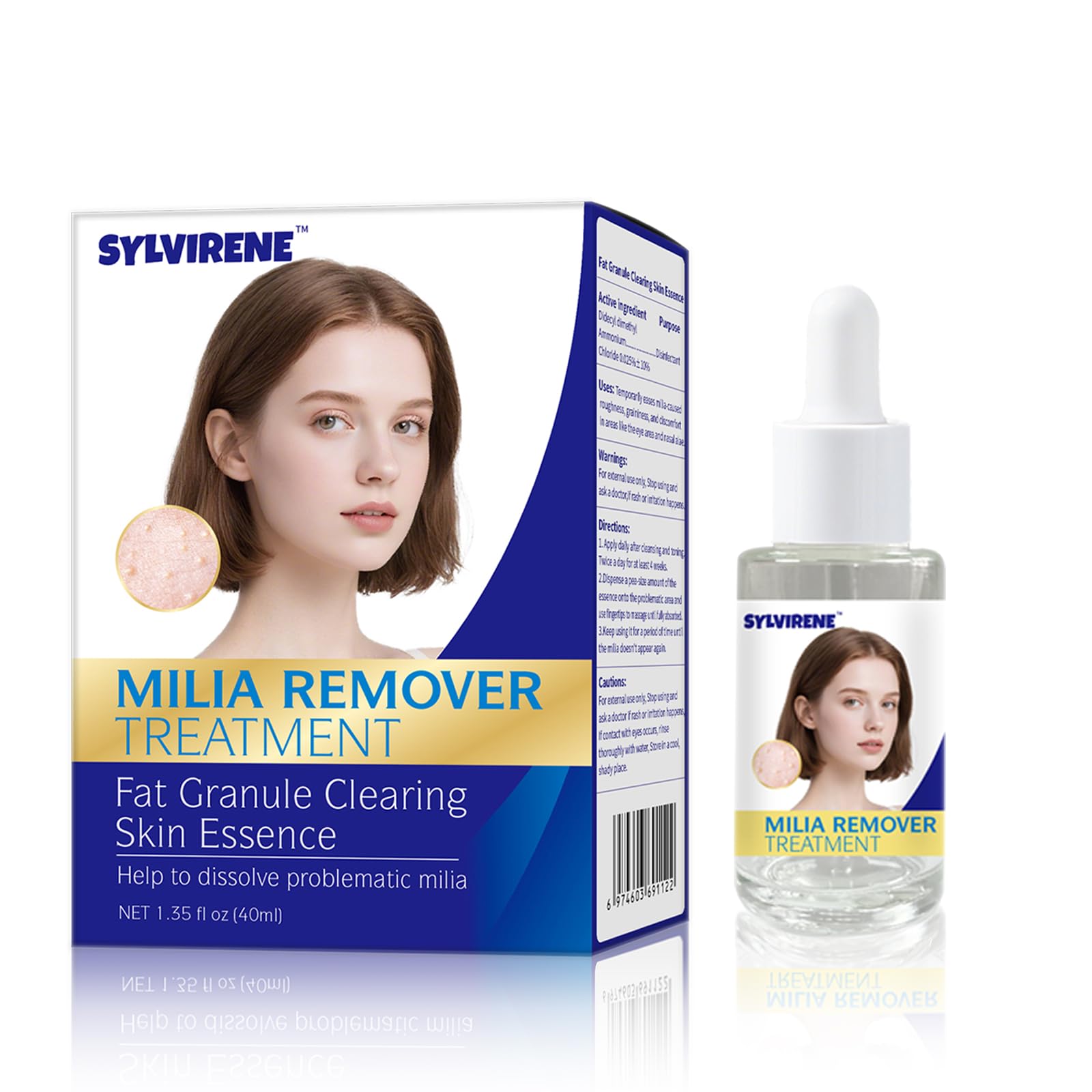 Sylvirene Milia Remover Treatment Serum 40ml Milia Removal for Eyes & Face Milia Acne Serum Fat Granule Clearing Skin Essence