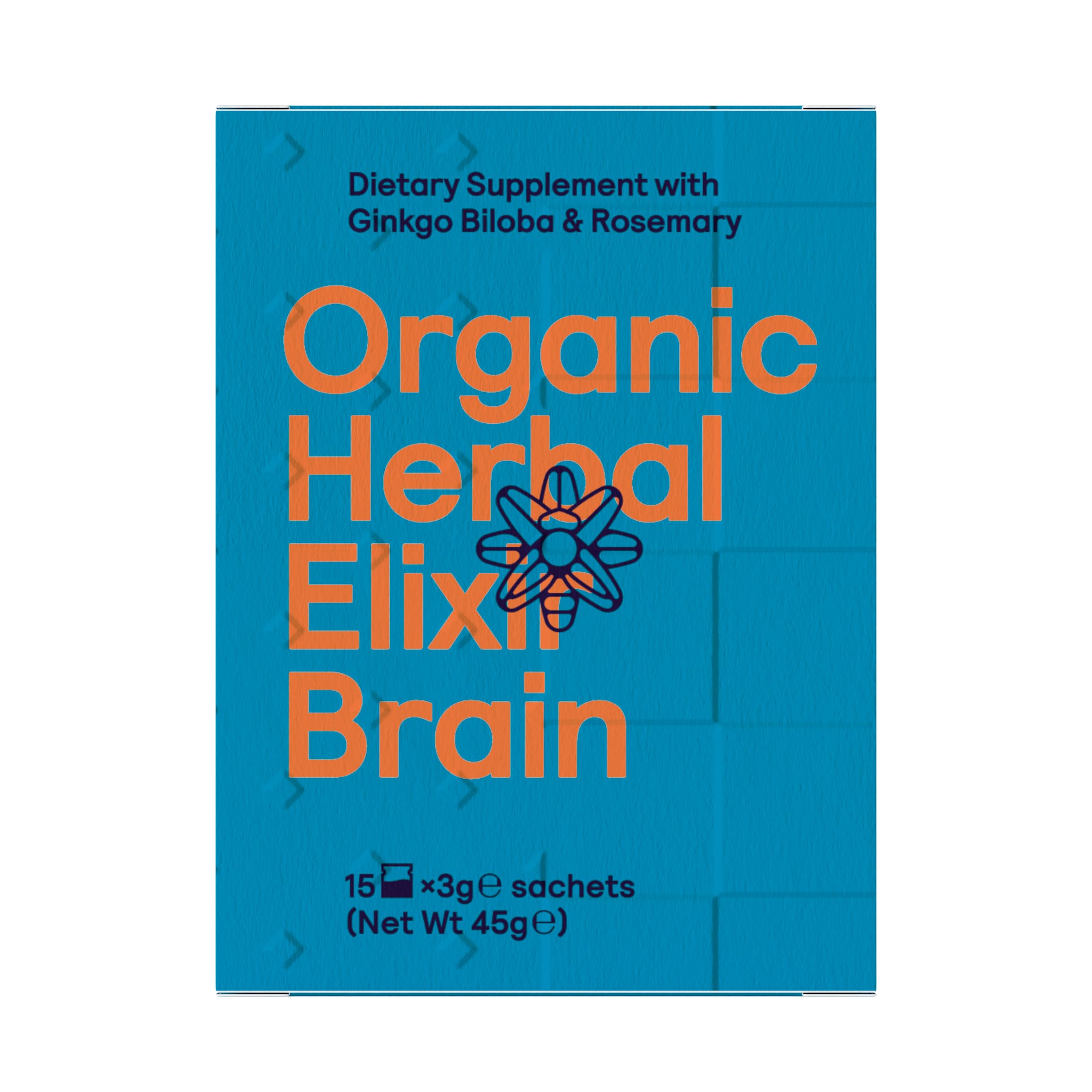 Symbeeosis Organic Brain Herbal Elixir with Ginkgo Biloba & Rosemary Enhances Memory and Concentration - 15 sachets x 3g