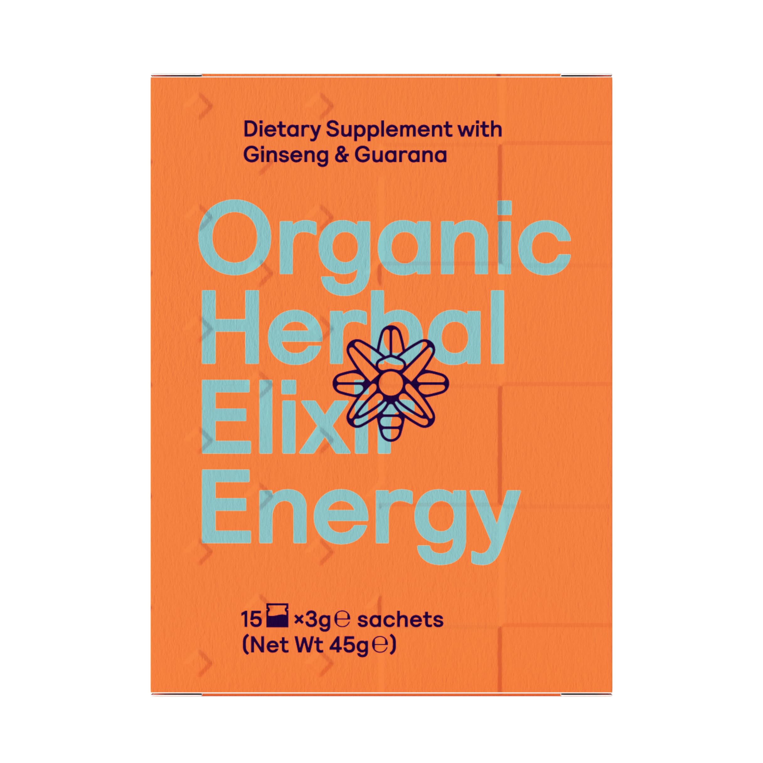 Symbeeosis Organic Herbal Elixir Energy with Panax Ginseng & Guarana Boosts Performance and Reduces Fatigue - 15 sachets x 3g