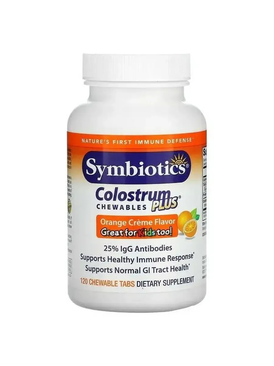 Symbiotics Colostrum Plus, апельсиновый крем 120 жевательных таблеток