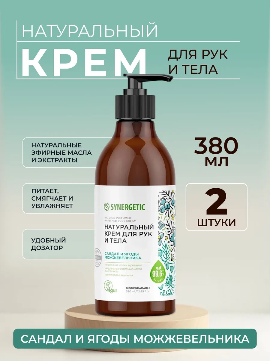 Натуральный крем для рук и тела SYNERGETIC "Сандал и ягоды можжевельника" обеспечивает эффективное увлажнение и дарит коже ощущение комфорта.