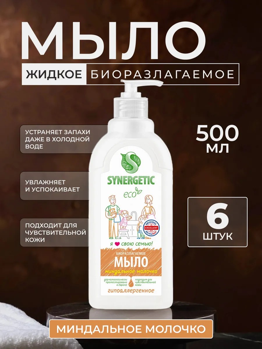 SYNERGETIC /6 шт./ Мыло жидкое 500 мл Миндальное молочко