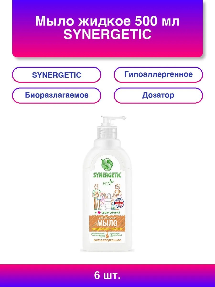 SYNERGETIC 6шт Мыло жидкое 500 мл SYNERGETIC "Миндальное молочко", гипо