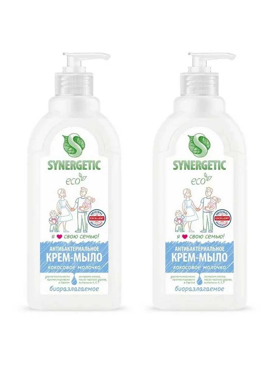 SYNERGETIC Антибактериальное крем-мыло Кокосовое молочко 500мл 2шт.