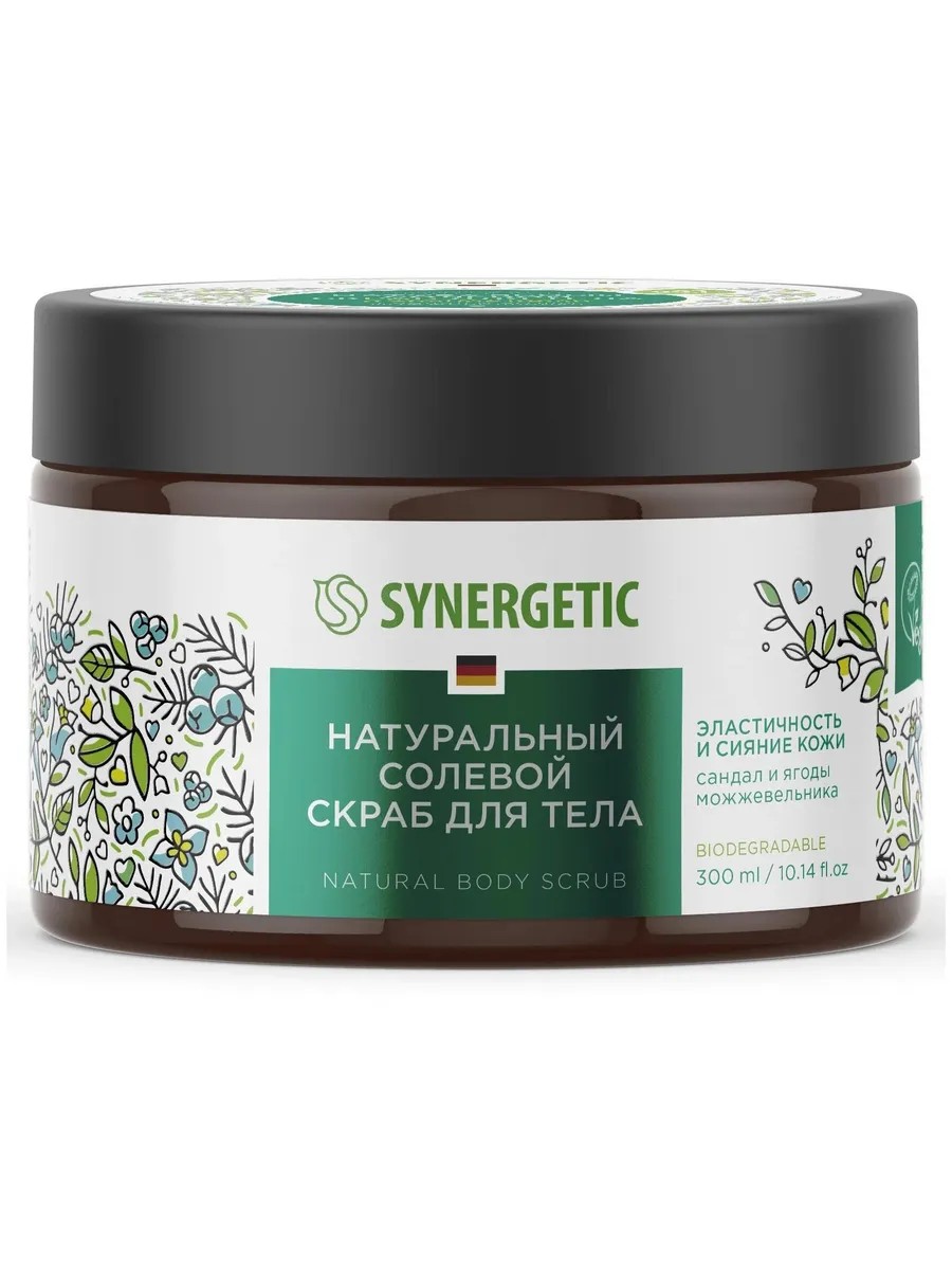 Synergetic, скраб для тела Сандал и ягоды можжевельника натуральный солевой, эластичность и сияние, 300 мл. Это эффективное средство для ухода за кожей, более чем на 99% состоящее из натуральных компонентов.