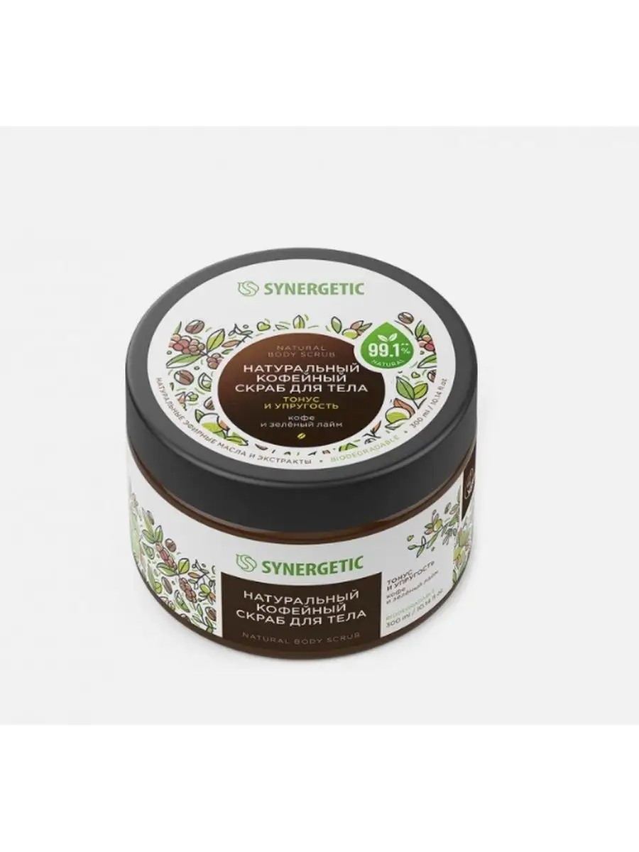 Натуральный кофейный скраб для тела SYNERGETIC тонус и упругость, кофе и зелёный лайм – это эффективное средство для ухода за кожей, более чем на 99% состоящее из натуральных компонентов.