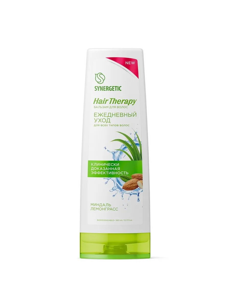 Бальзам для волос SYNERGETIC "Ежедневный уход" HAIR THERAPY - эффективное и безопасное средство для ухода за всеми типами волос. Формула бальзама с натуральными компонентами оказывает комплексное воздействие на структуру волос. Кондиционирующий комплекс с мягким увлажнителем изомератом сахарида эффективно ухаживает за волосами, придавая им жизненную силу и блеск. Масла кокоса и миндаля питают, укрепляют и увлажняют волосы, способствуя восстановлению их природной мягкости и эластичности. Экстракт лемонграсса обладает освежающим и тонизирующим эффектом, помогает улучшить структуру волос и придать им здоровое сияние. Натуральный пребиотик инулин в сочетании с пантенолом обеспечивает длительный кондиционирующий эффект и стимулирует восстановление кератиновых волокон, придавая волосам гладкость и шелковистость, облегчая расчесывание. Эффективность бальзама при регулярном использовании подтверждена аккредитованным испытательным центром. Aqua, Cetearyl Alcohol, Glycerin, Octyldodecanol, Cocos Nucifera Oil, Behentrimonium Chloride, Glyceryl Stearate, Hydroxyethylcellulose, Parfum, Сetrimonium Сhloride, Panthenol, Prunus Amygdalus Amara Kernel Oil, Lauryl Glucoside, Cymbopogon Citratus Extract, Saccharide Isomerate, Benzyl Alcohol, Benzoic Acid, Dehydroacetic Acid, Inulin, Potassium Sorbate.