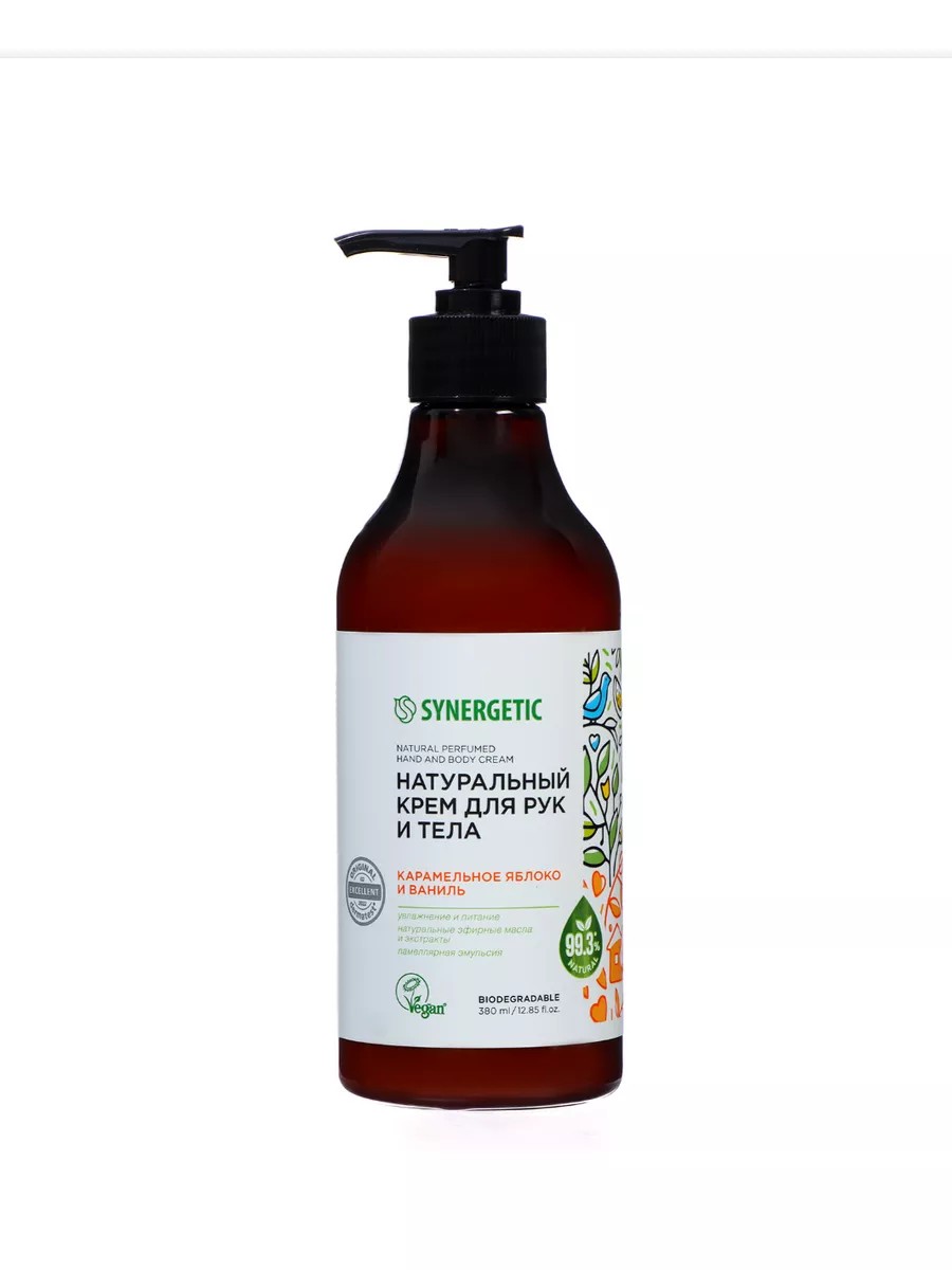 Synergetic. Крем для рук и тела, натуральный, Карамельное яблоко и ваниль 380 мл, 1 шт.