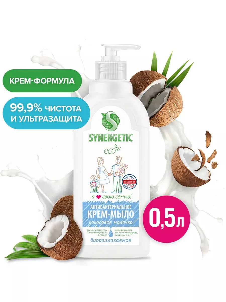 SYNERGETIC Жидкое крем-мыло "Кокосовое молочко" 500мл