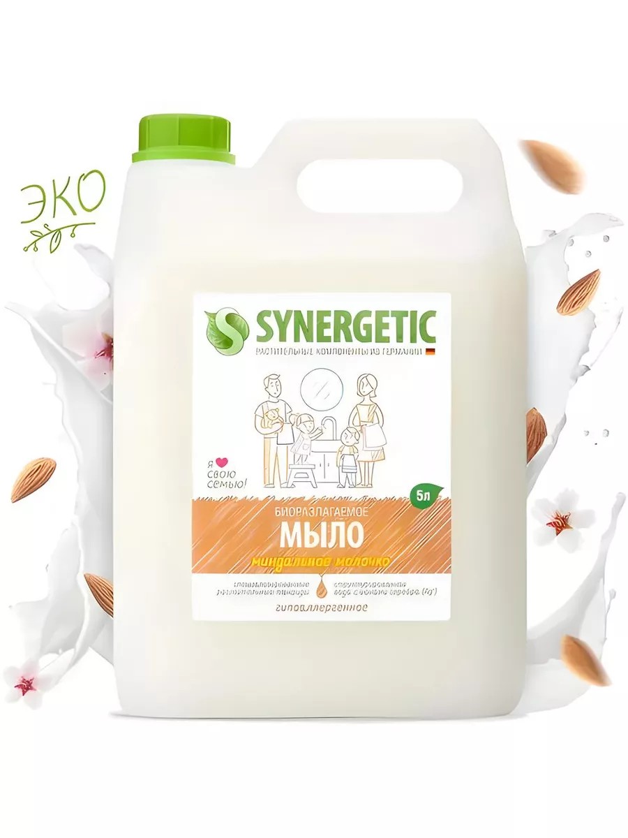 Биоразлагаемое увлажняющее мыло SYNERGETIC "Миндальное молочко" подходит для бережного очищения кожи рук и тела от любых загрязнений.