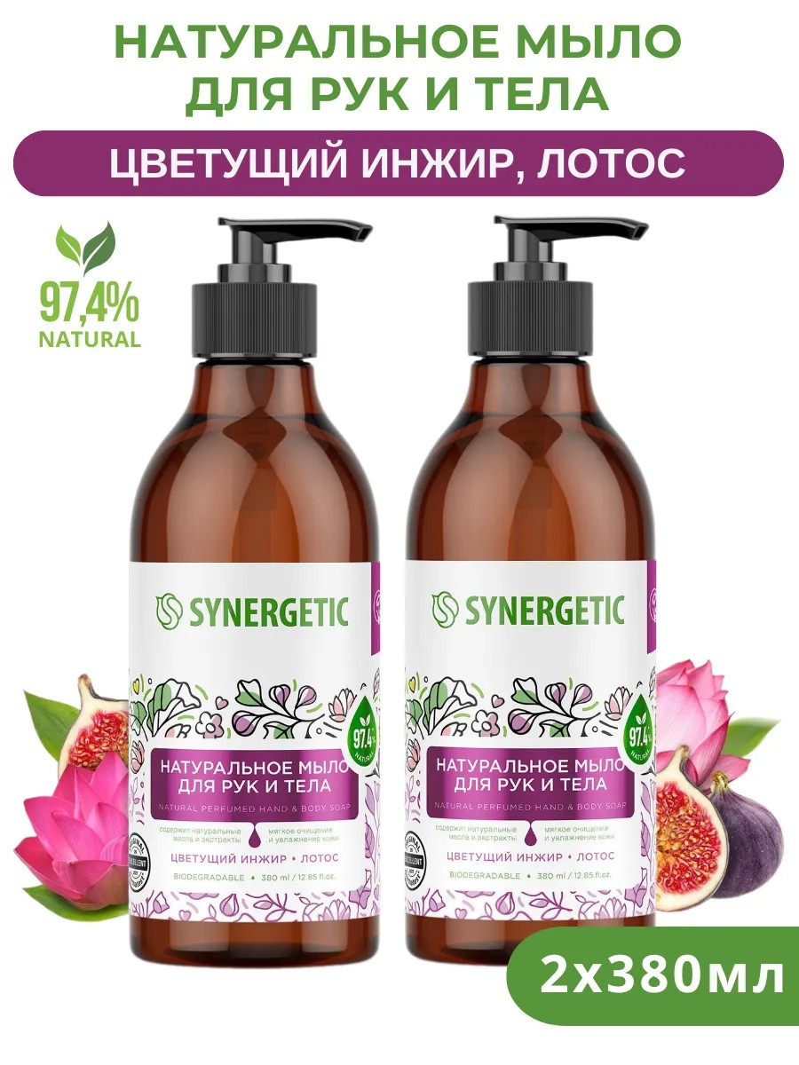 Натуральное жидкое мыло для рук и тела Synergetic "Цветущий инжир и лотос"