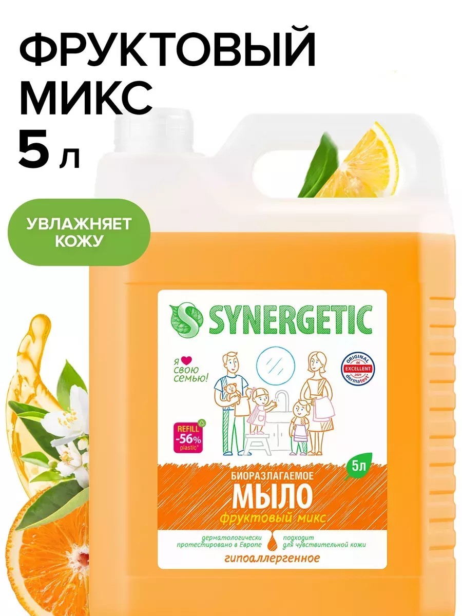 SYNERGETIC Жидкое мыло для рук и тела, Фруктовый Микс, 5 л