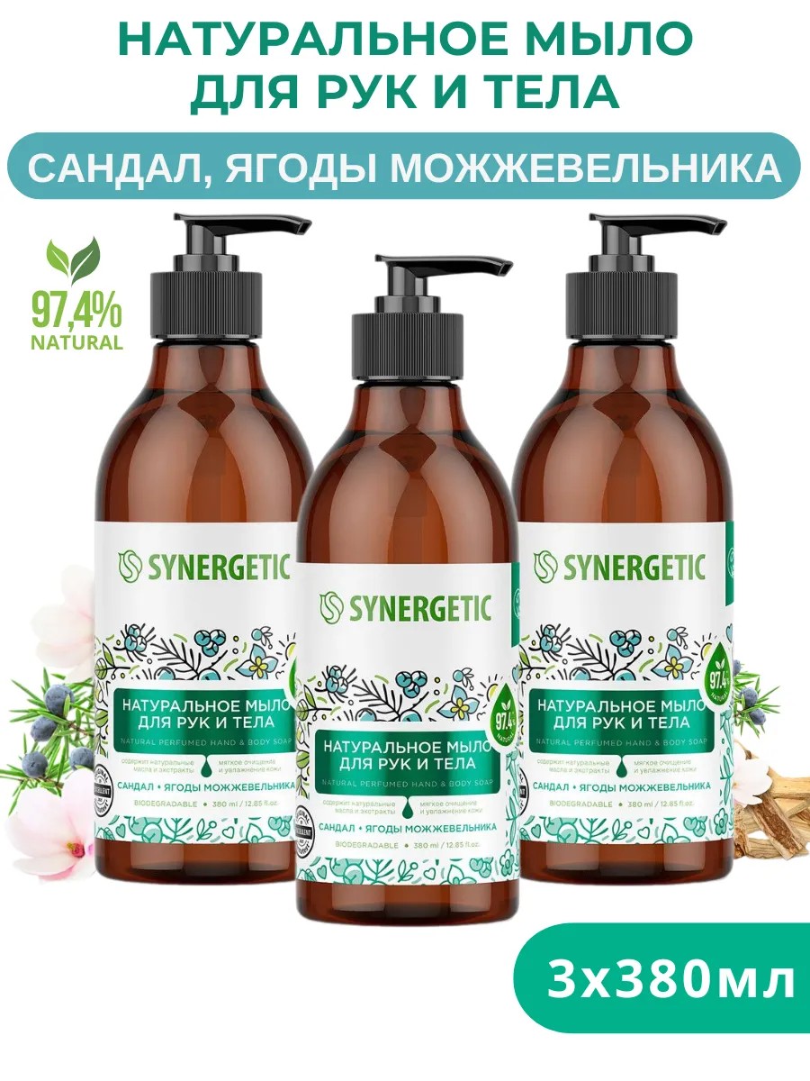 Натуральное жидкое мыло для рук и тела Synergetic "Сандал и ягоды можжевельника"